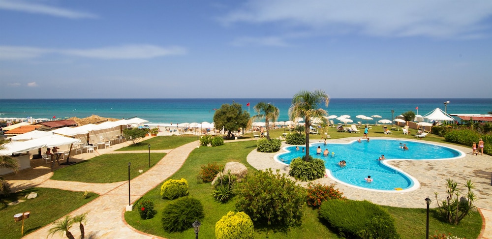 Das Hotel / Resort liegt direkt an der Uferstraße von Zambrone Marina. Die Anlage teilt sich auf in ein Haupthaus mit Rezeption und einigen Zimmern, kleineren Häuschen in einer wunderschönen Parkanlage, einem Speisehaus und dem Badebereich (Pool / Meer) mit Poolbar.