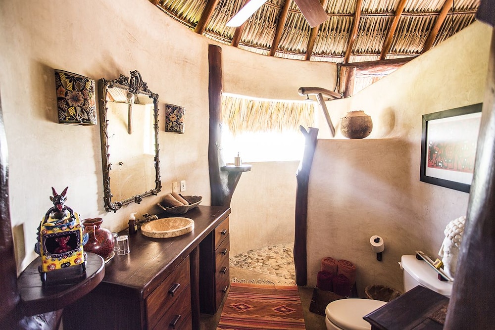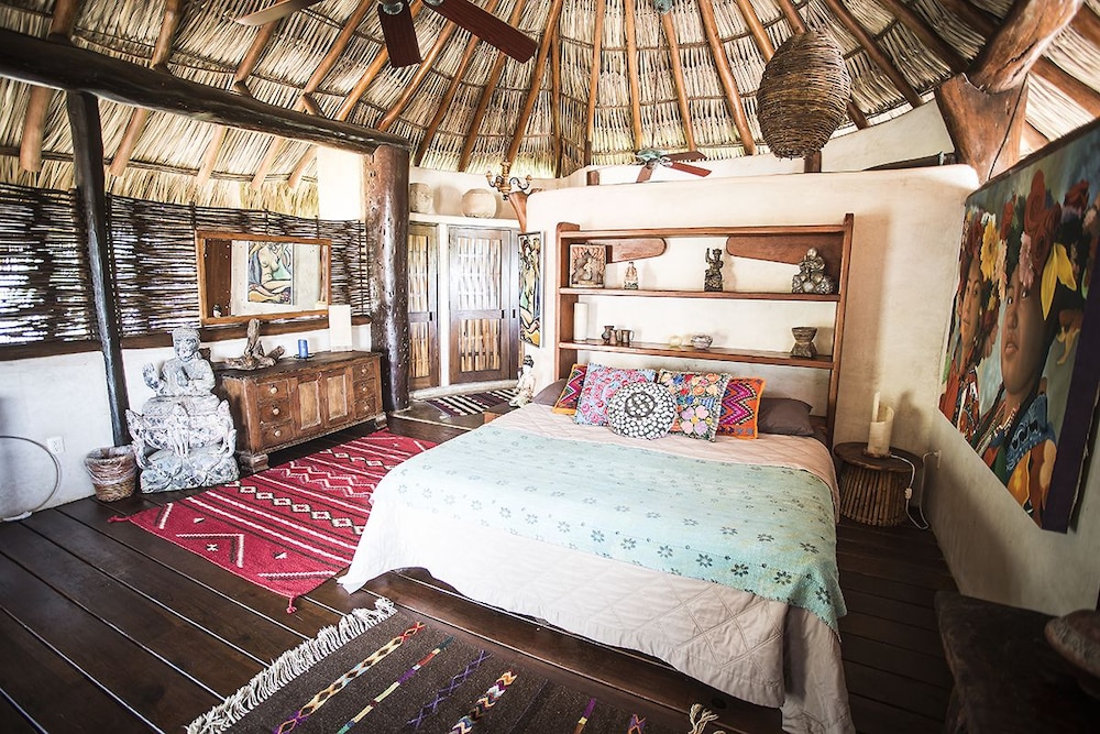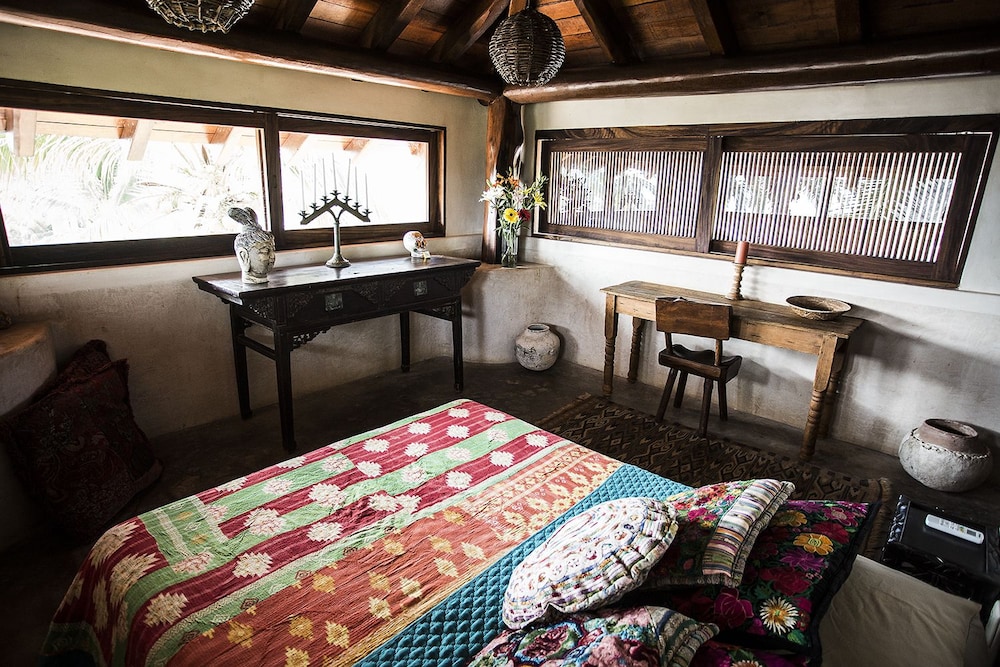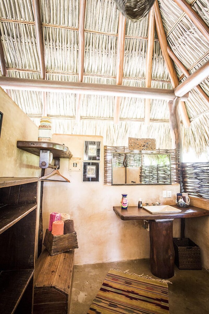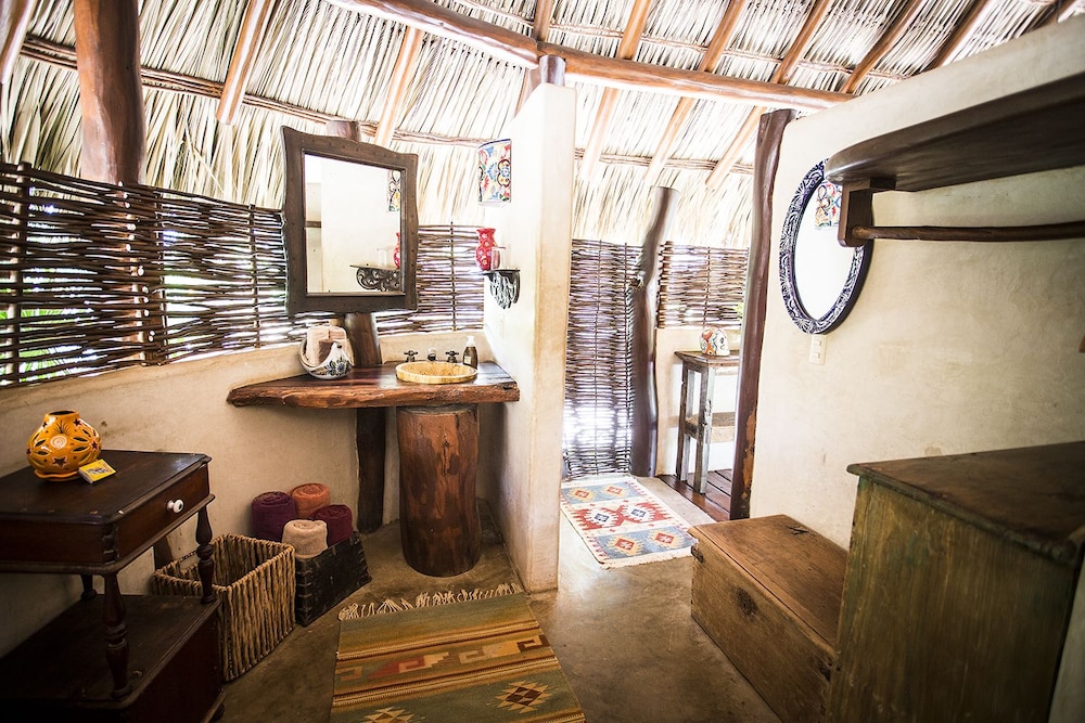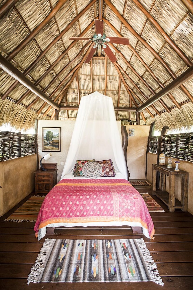 I have roughed it in the Amazon and stayed in posh "tents" in Africa....this is something in between. The grounds are immaculate and I was pleasantly surprised to have my suitcase brought to a large, open-air, palapa-style room, before I had even found the front desk. I felt like I had stumbled into the style of vacation I see in the movies, but never can afford in reality. Mosquito nets graced the beds but were never *really* needed. Colorful wool rugs accent the floors and although their is room to store you belongings the room still felt spacious and free-flowing. The shower is divine. I would always prefer a bit more lighting for personal grooming but I got along fine, contact lenses and all. While the food is not inexpensive, it is top-notch and mouth-watering. The entire staff is very hard-working, kind and generous and they seem to be treated as family. Meditation and yoga activities go on throughout the day and there is something for everyone. My only wish would have been for a bit of music to be quietly played in the restaurant while no practices were going on. At least occasionally. They did have fun music in the evenings, either live or the staff's. I would also warn those travelers that are used to sleeping in complete quiet to bring earplugs! Although the rooms are set back from the ocean, you are still hearing the waves quite well. I should have thought ahead and was a little surprised at how much that aspect affected my sleep!
