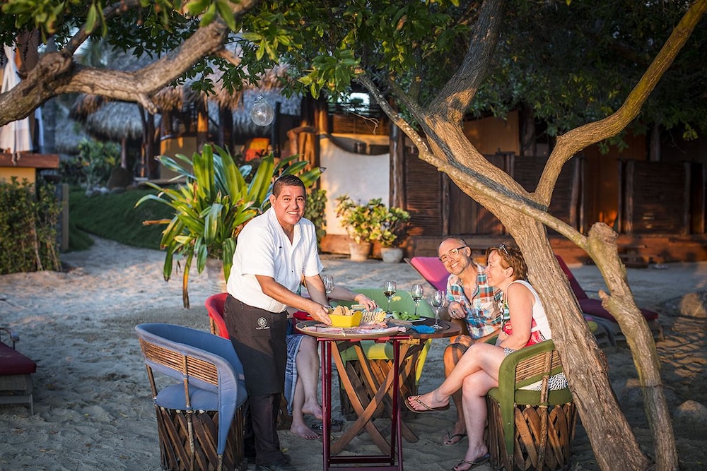 El restaurante tiene una magnifica vista al mar. El cuarto esta hermoso! El acceso a la playa casi privada es unico. Las clases de yoga son excelentes. La atencion del restaurante gracias a Manuel por la tarde te hace sentir como el unico huesped. Si estas eres de los que quiere dejar todo bajo llave el cuarto es abierto asi es que consideralo para llevar cosas por las que no te preocupes