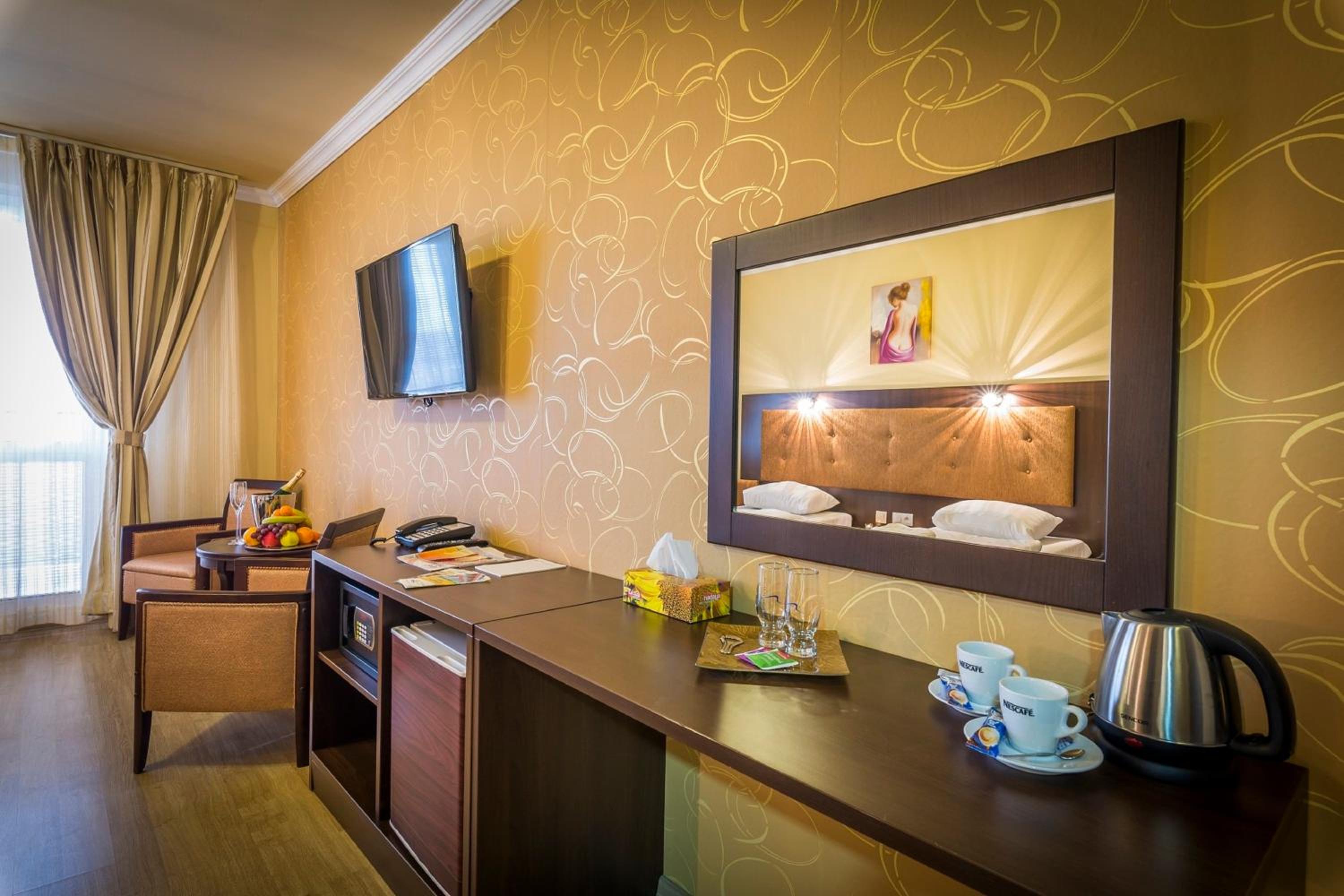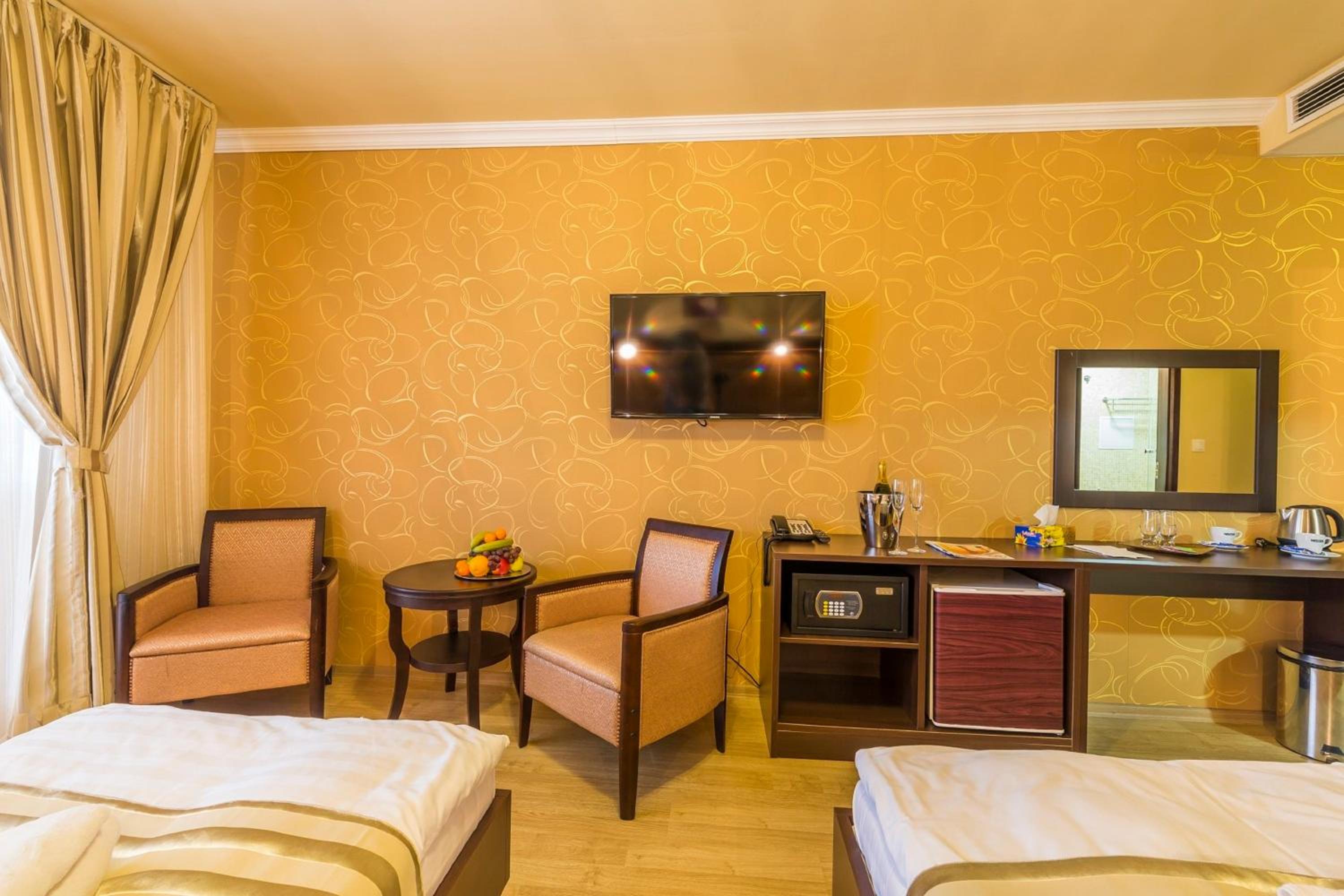 Modern Comforts: Enjoy air-conditioned rooms with free WiFi and access to a fitness room. The rooms are spacious and well-equipped with satellite TV, electronic safe, and minibar. Some even feature a kitchenette and a balcony for added convenience.