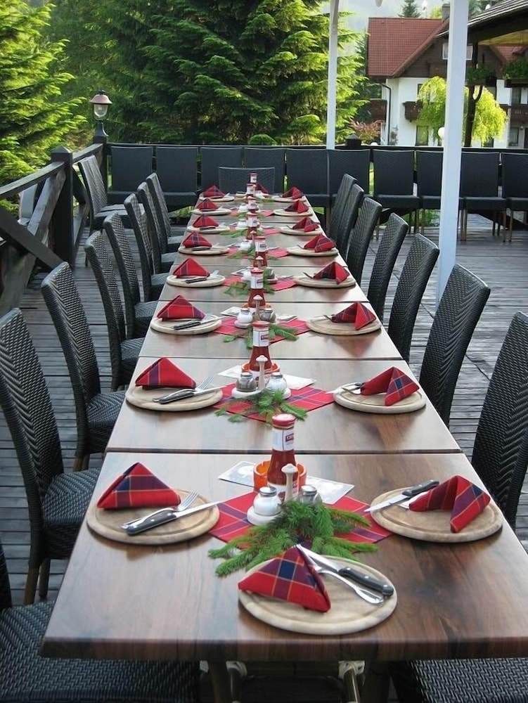 Śniadania smaczne. Codziennie owoce, deser. Lokalizacja dobra. Przy pensjonacie jest przystanek skibusa, żeby dojechać na stok. Wymiana ręczników co dwa dni. Narciarnia.