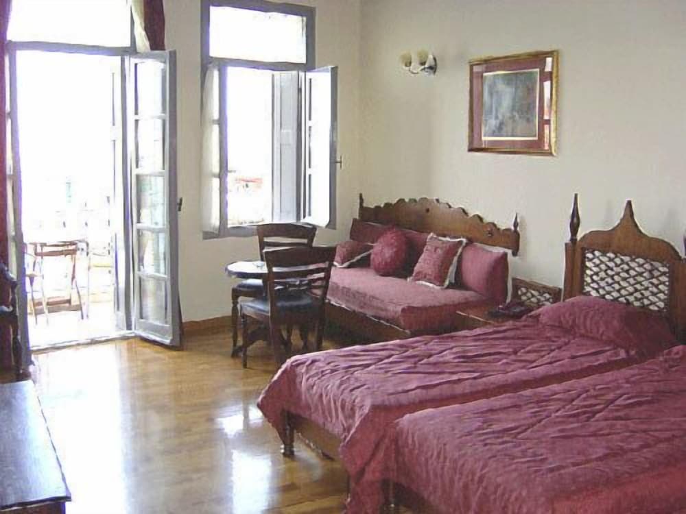 Belmondo is one of the hotels situated in the port area of Chania. The location is truly great, right in the middle of everything, with rooms overlooking the water. The main inconvenience is that there is practically no parking in the vicinity, so you'll have to walk for at least 15-20 minutes to the nearest parking lot. Not to say, that even if you find a spot you'll risk a fine because most parkings in this area are "for residents only"! There is also no elevator, which is pretty common for the old buildings in this area, so be warned if you carry heavy luggage or have bad knees. The rooms are kind of romantic and nice, but the furnishings are very outdated and truly worn out. When it comes to cleanness, that leaves much to be desired. Bed covers are truly old and stained. And while they claim to clean your room every day, you don't really see much of it. All they practically do is change your towels (only if you ask for it!) and straighten up your bedding. They don't clean the floor, the toilet, the shower, or the sink. We stayed there for a week and in a week not even once the toilet was cleaned! Personnel is also a little edgy if you dare ask for something. One evening I remember asking the receptionist if I could get a set of clean towels because I forgot to leave them on the floor in the morning. He asked me if it has been 3 days since I had them changed because they don't change the towels every day. In the end he gave me new towels, but not after a little fuss.
