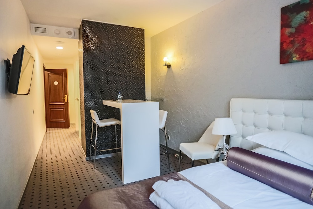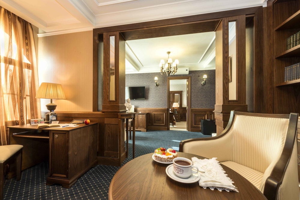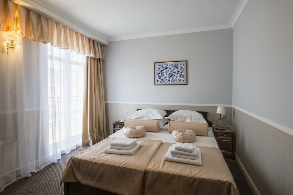 Останавливаемся не первый раз в этом отеле , за последние 2 года люкс классические немного стал обшарпанным и подубитым , в глаза бросаются перетянутые кресла , раньше оставляли шоколадки на подушка в данной категории номеров (сейчас как то стало пусто ) , завтрак однообразный , не хватает салатов из зелени или фруктов , один и тот же вид ветчины (хотелось бы разнообразия) та же история с сыром(но есть вкусный кремчиз) , еще один огромный недостаток это ресторан «Паскаль» , когда звонишь в ресторан и просишь принести посуду в номер , то чаще всего официант якобы занят(ссылаются на полную посадку) , после того как спускаешься САМ за посудой , видишь пустой зал с официантом, можно сделать вывод что люди в ресторане не хотят работать ! В целом расположение удобное, рядом магазины , кафе и заведения общепита , даже есть салон красоты , и магазин косметики. Из минусов двора , не удобная парковка( не понятно где можно оставлять машину , а где нет , запарковался и тебе в номер звонят и просят перепаковать машину , второй момент это въезд на парковку , ворота открыты не до конца и по этому не удобно выезжать на длинной машине !