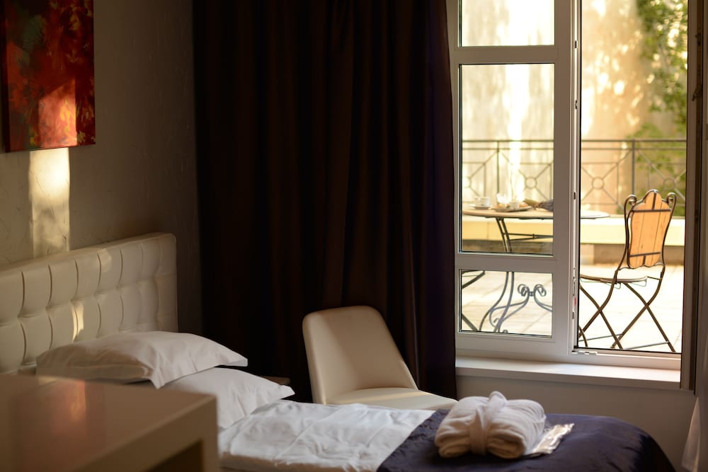 Bokade ett enkelrum med terrass. Stor och rymlig, men tyvärr mot en hårt trafikerad gata. Parasollet var trasigt. Kylskåpet höll inte normal temperatur, betydligt varmare. Gick tyvärr inte att åtgärda.