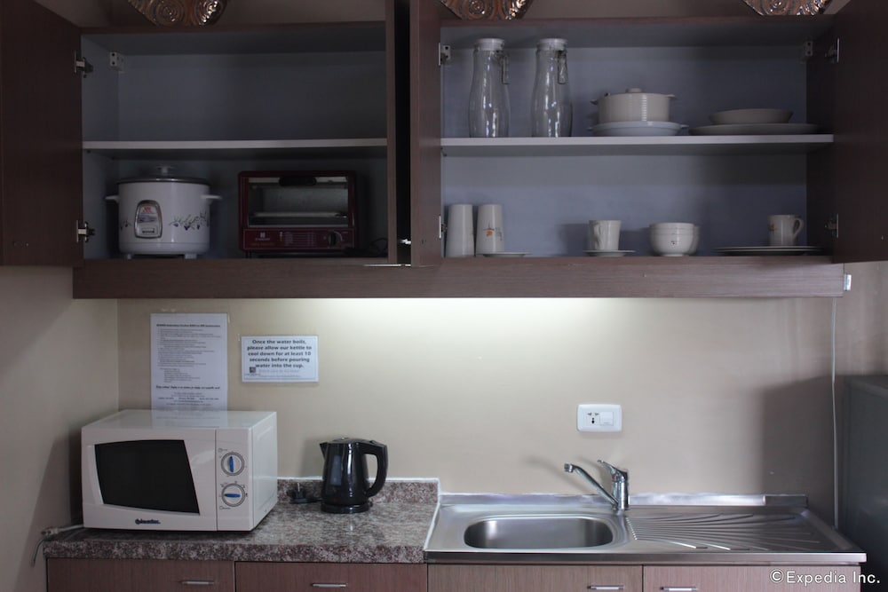 Shaw Residenza was close to various restaurants and malls and it was easy to get a GRAB, Taxi, or Jeepney to places on Shaw Blvd. The hotel also had two complete bathrooms, a kitchen sink, water pot to heat water, a hot plate with pots and pans, a refrigerator, and a microwave. The sofas and beds were clean and comfortable but only the showers had hot water. If we needed hot water at the kitchen sink we had to either bring it from the shower, or heat it on the hot plate or water pot. Drinkable water was provided in a blue 20 liter plastic jug that was sealed in a plastic wrap and placed on the sink counter.