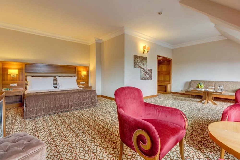 Hotel ile ilgili tüm yorumları okudum. Gelmeden önce okuduğum olumsuz yorumlar ile ilgili hiçbir şey ile karşılaşmadım. Yanlış anlaşılma olmasın, olumsuz deneyimler yaşayanların bunları yorum olarak yazmalarına müteşekkirim. Bu yorumu olumsuzlukları yaşayanları yalanlamak amacıyla değil benim gibi olumsuz yorumları çok fazla dikkate alıp tereddüt yaşayacak insanları aydınlatmak için yazıyorum. Otel eski bir otel. Konumu çok iyi odalardaki eşyalar eski fakat yıpranmış değiller. Bana göre otel odalarındaki en önemli iki konu yatak ve banyo. Banyolar yenilenmiş ve gayet temizdi. Yatak çarşafları ve yastıklar rahat ve hijyenikti. Odadakı halı ve perdeler de yeterince temiz durumdaydı. Isıtma mükemmeldi. Ne uyunamayacak kadar sıcak ne de üşüyecek kadar soğuktu. Akşam yemeğindeki menü dolgundu. Yemekler lezzetliydi. Sabah kahvaltısı da aynı şekilde bol çeşitli ve lezzetliydi. Yoğun bir zamanda giriş yaptık. Resepsiyon hızlı bir şekilde bizi fazla bekletmeden giriş işlemlerini yaptı. Personel güler yüzlü ve yardımseverdi. Otopark yeterli büyüklükteydi. Kısacası biz çok memnun kaldık. Emeği geçen herkese bize bu güzel hafta sonunu yaşamamıza katkı sağladıkları için çok teşekkür ederiz.