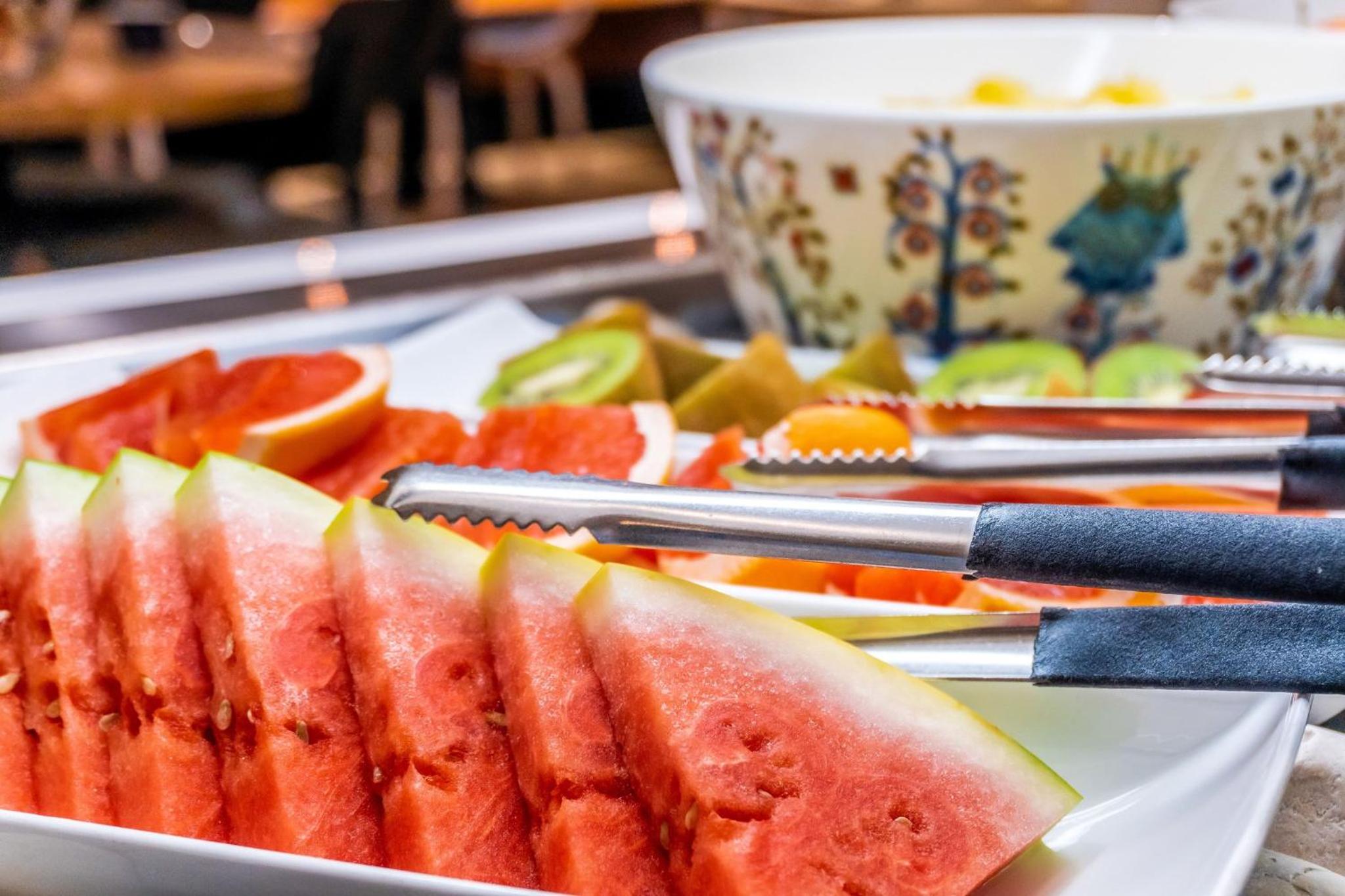 Aamiainen oli heikentynyt edellisestä vierailusta. Leipävalikoima oli niukka (varsinkin ruisleipä). Tilattavat annokset eivät olleet minua mielyttäviä (ja joutui jättämään lautaselle, koska esim. perunarösti ei ole suosikkini aamiaisella). Olisi hienoa, jos perusruuat kuten esim. munakokkeli ja pekoni olisi saatavilla buffetista, niin voisi ottaa ruokaa niin paljon kuin syö. Hedelmävalikoimassa oli vesimelooni ja kiivi. Mielestän niukka, varsinkin näin kesäaikana. Jälkiruokana pari eri pullavaihtoehtoa, joista toinen oli loppu ennen kuin ehdin jälkiruokaan asti.