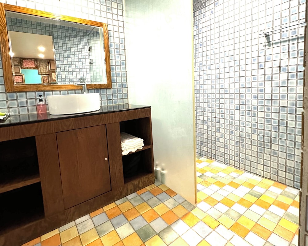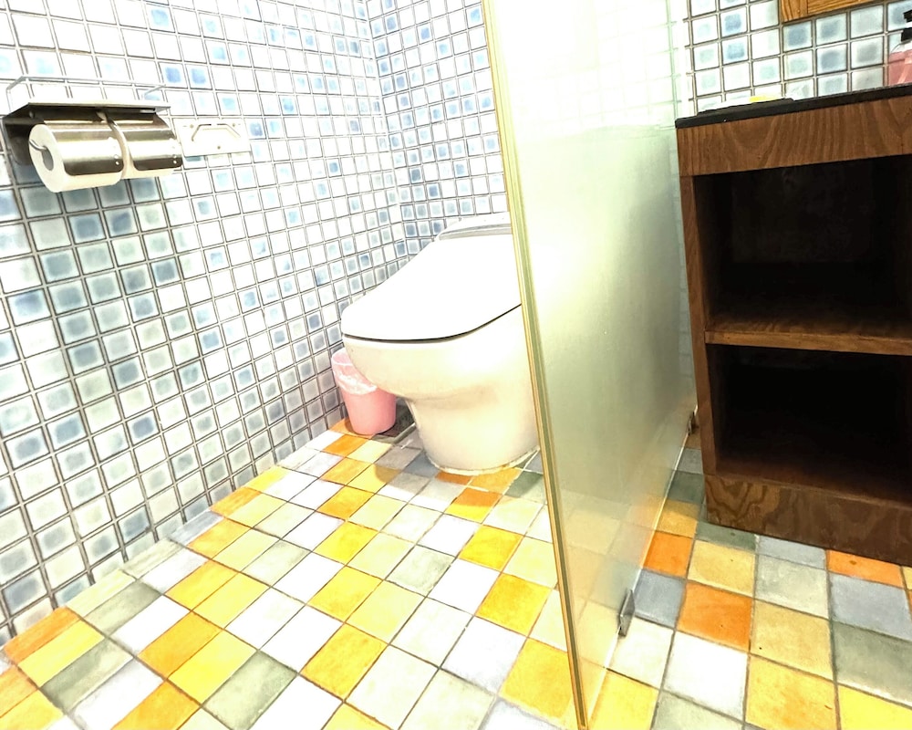 Pros: You can check-in anytime you want. The hotel did not seem busy with many other guests. The front desk staff gave me an upgraded room compared to the reservation that I made. Nice gesture. Interior of room was spacious with a comfortable bed, huge TV, 2 computers, and a table and 2 chairs. The toilet, sink, and shower room were all separated from one another, which seems like a bad idea, but the room layout worked really well. The interior of the room felt like a room in a home, aided by the use of bricks and colorful art décor.
