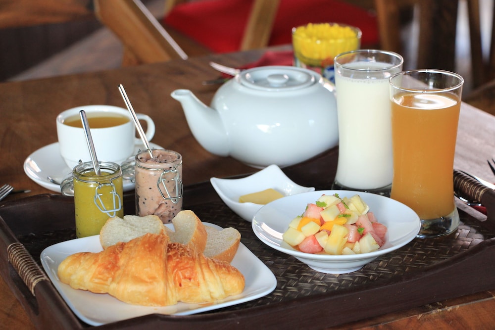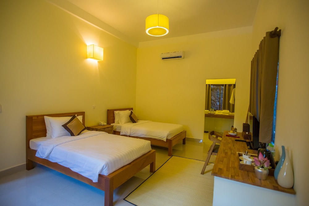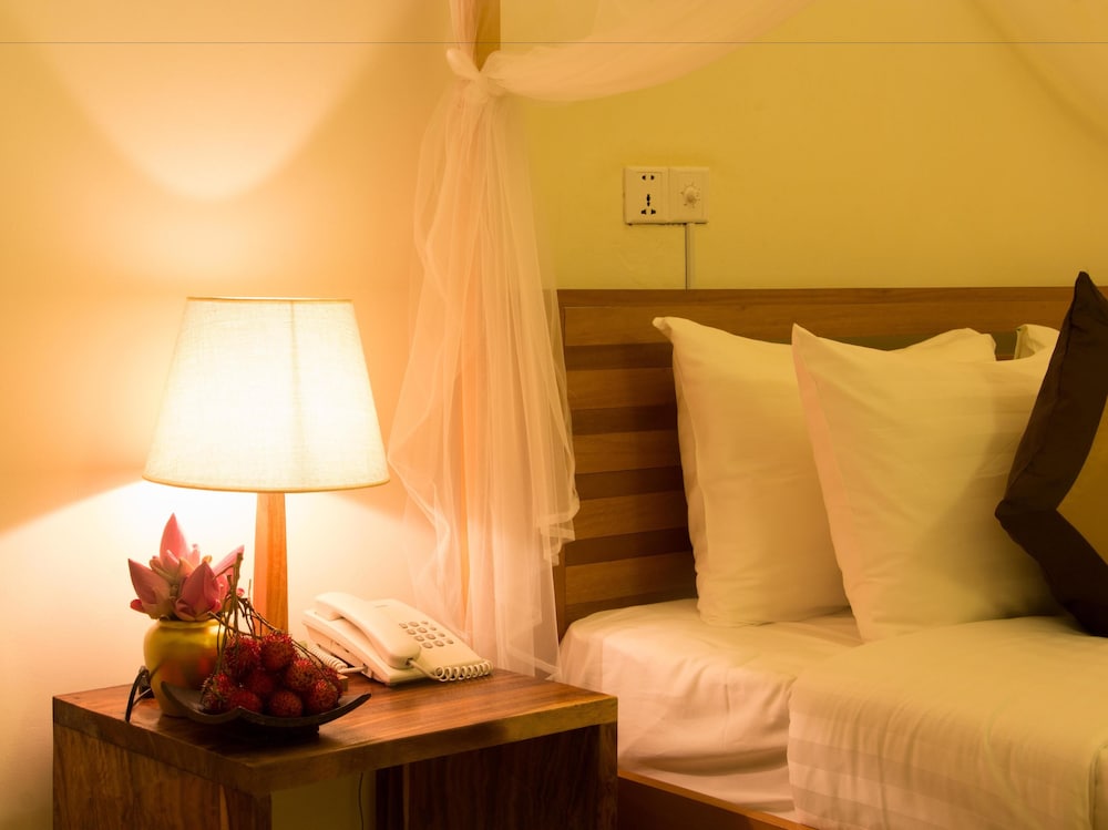 The hotel was in poor location away from the town. It was very poorly lit. The initial unit’s bathroom was in a terrible state. The bathroom had patched up concrete walls and floor and no partition or curtain from the shower to the bathroom floor. There was no hot water and when I took a shower, water ran over to the bathroom and the bedroom floor. The towels were threadbare. The young gentleman who served breakfast could not understand English and had to get the manager every time I asked for coffee or tea. The coffee was too strong and the tea was lukewarm. They ran out of croissants one day. They promised to have breakfast boxed for Angkor wat sunrise tour but I did not see a sign of another human being except the night watchman. So much for boxed breakfast. The breakfast was supposed to start at 6 am but was never ready before 6.45 am. They had no sugar for in room coffee and tea making.