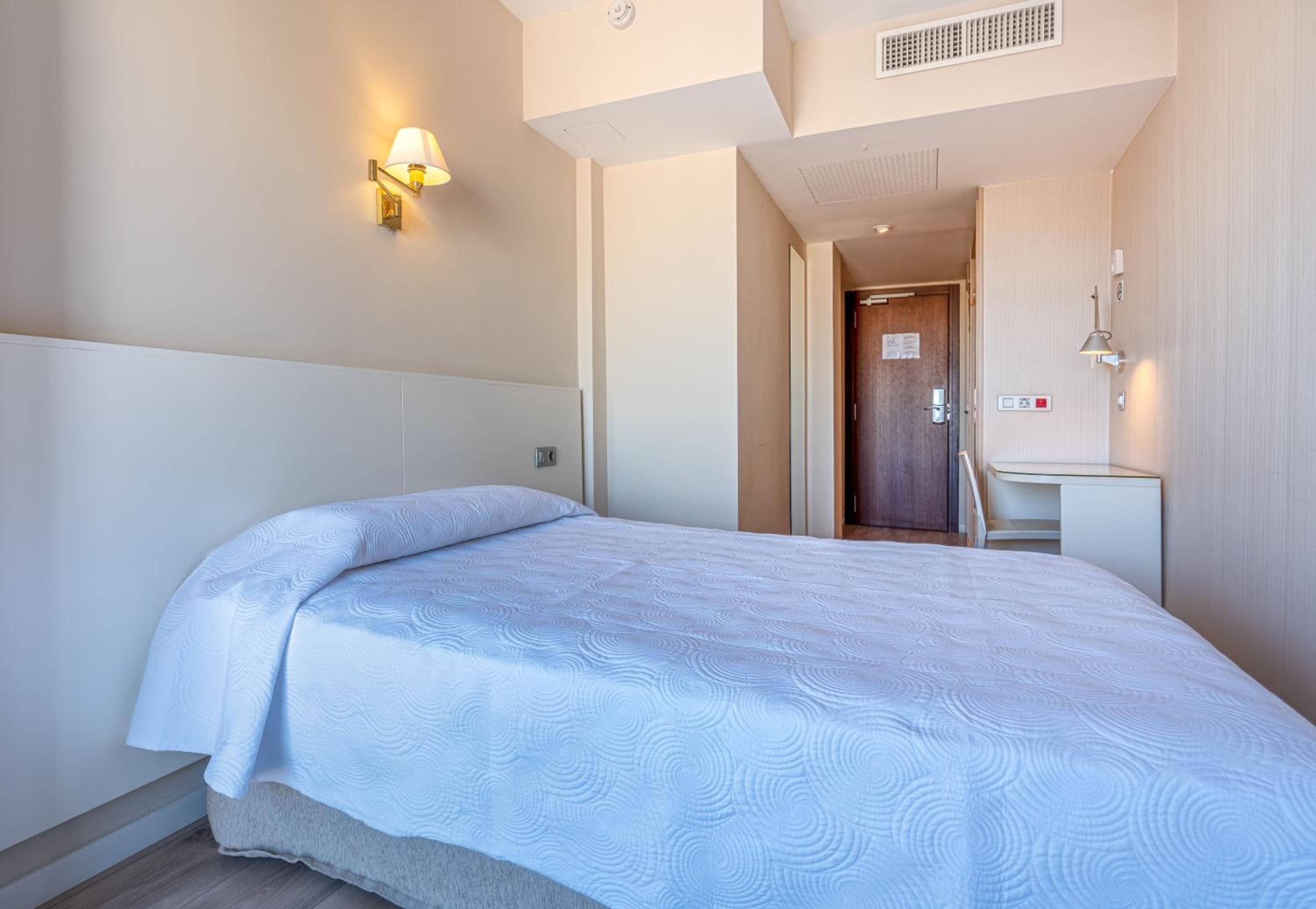 No había enchufe en la mesita de noche de la cama y la tele estaba muy mal situada para poder verla desde la cama. Solo había agua de cortesía rellenada, lo cual no me da ninguna confianza de que alguien haya podido manipularla, o que el anterior cliente no haya bebido de la misma botella. Deberían estar precintadas.