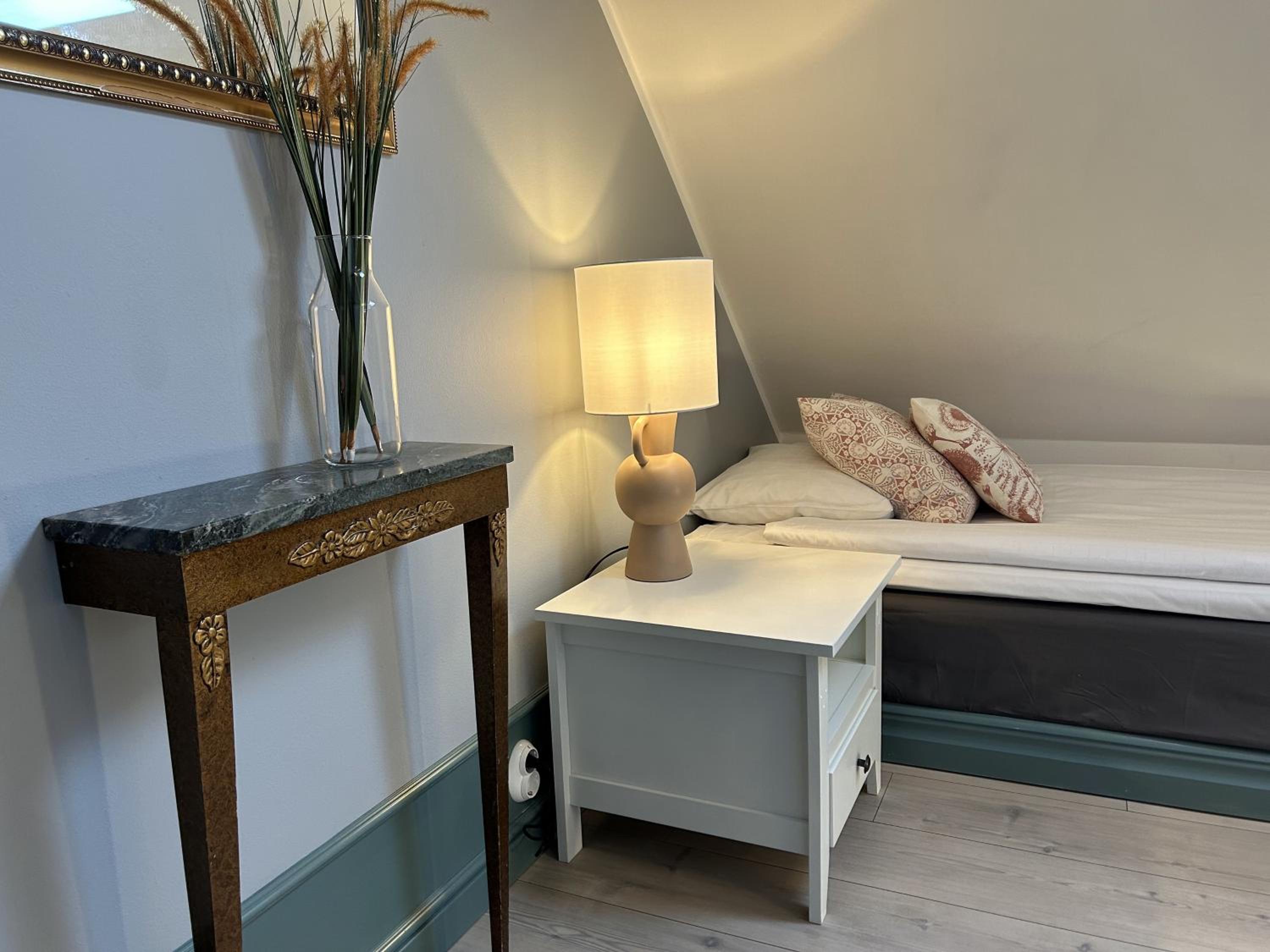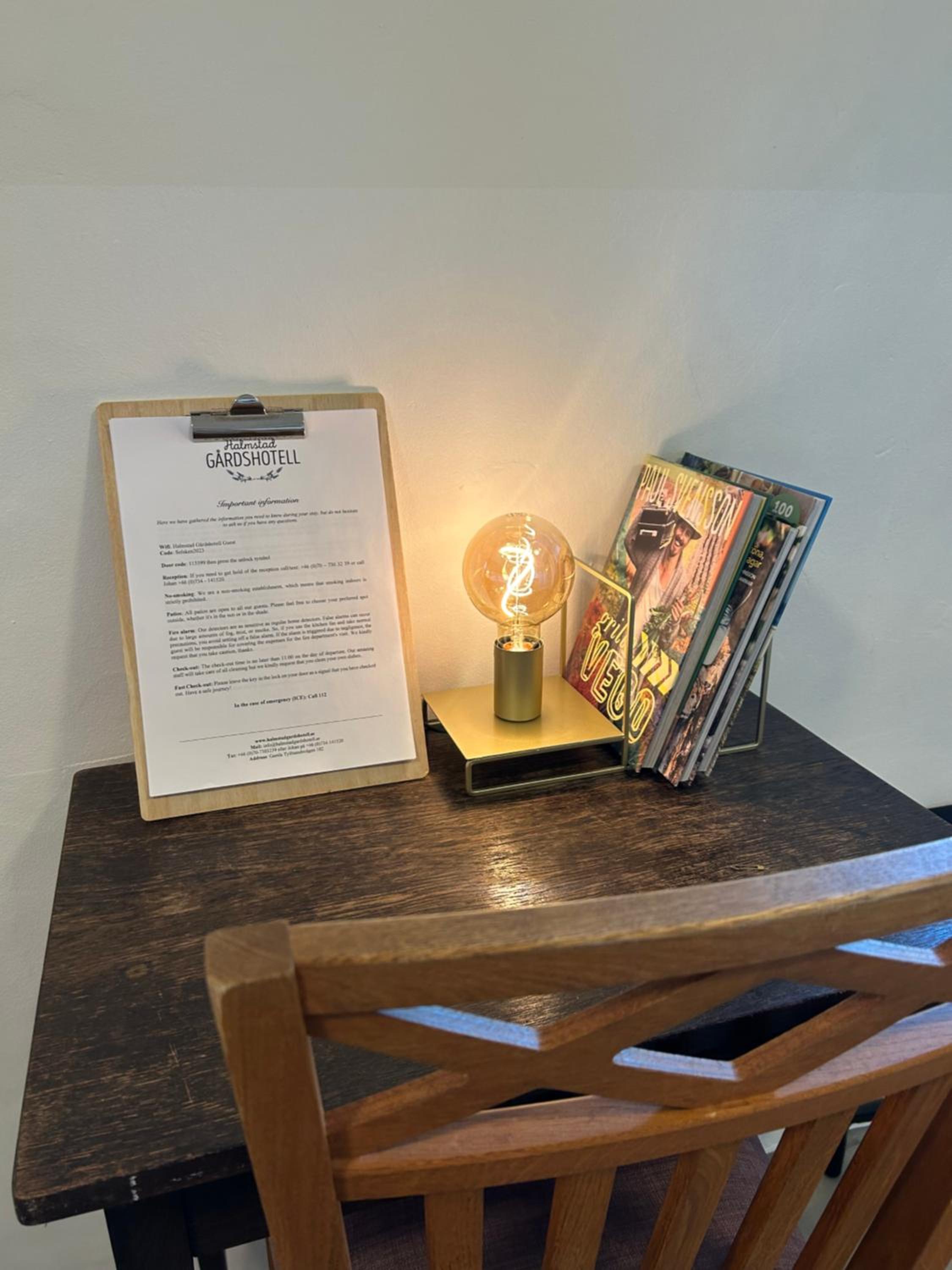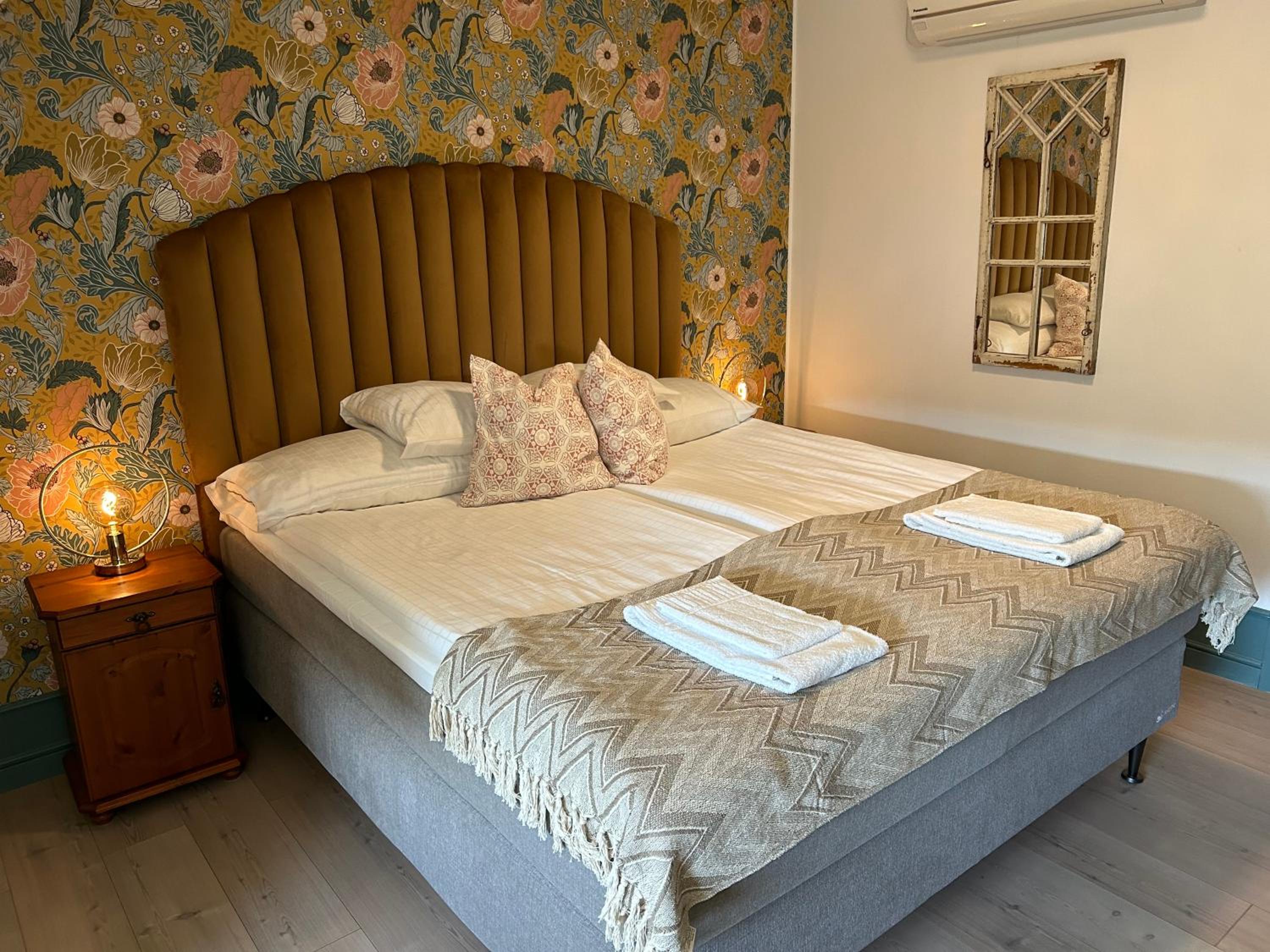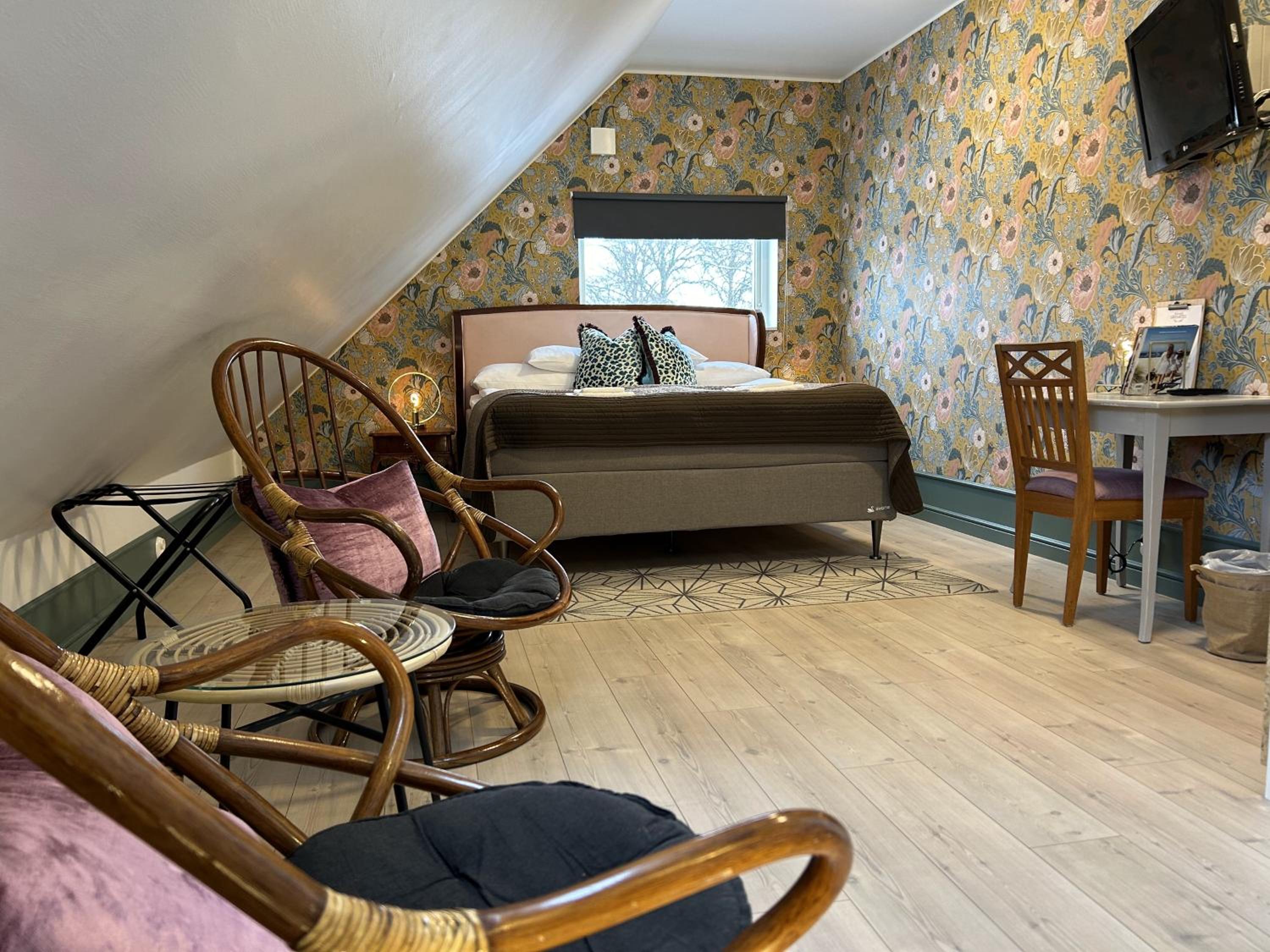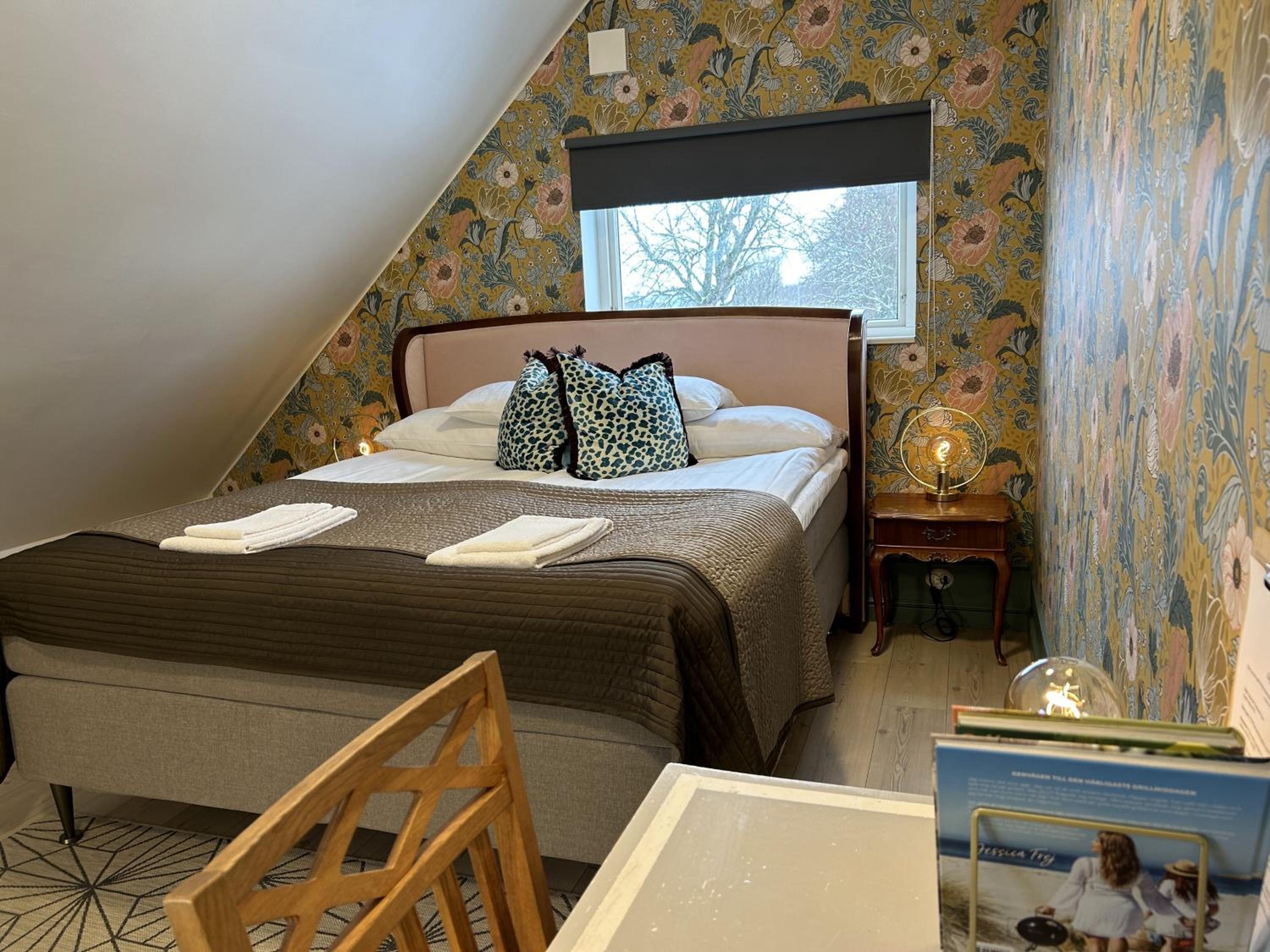 Gezellig hotel op 20 minuten rijden van de veerhaven. Ideaal gelegen voor een eerste of laatste nacht in Zweden. Gezellige gemeenschappelijke ruimte met keuken, eetkamer en bruine kroeg. Schone kamer, rustig gelegen. Groot erf met zitjes, speeltoestellen en pizzaoven. Johan is een vriendelijke gastheer.