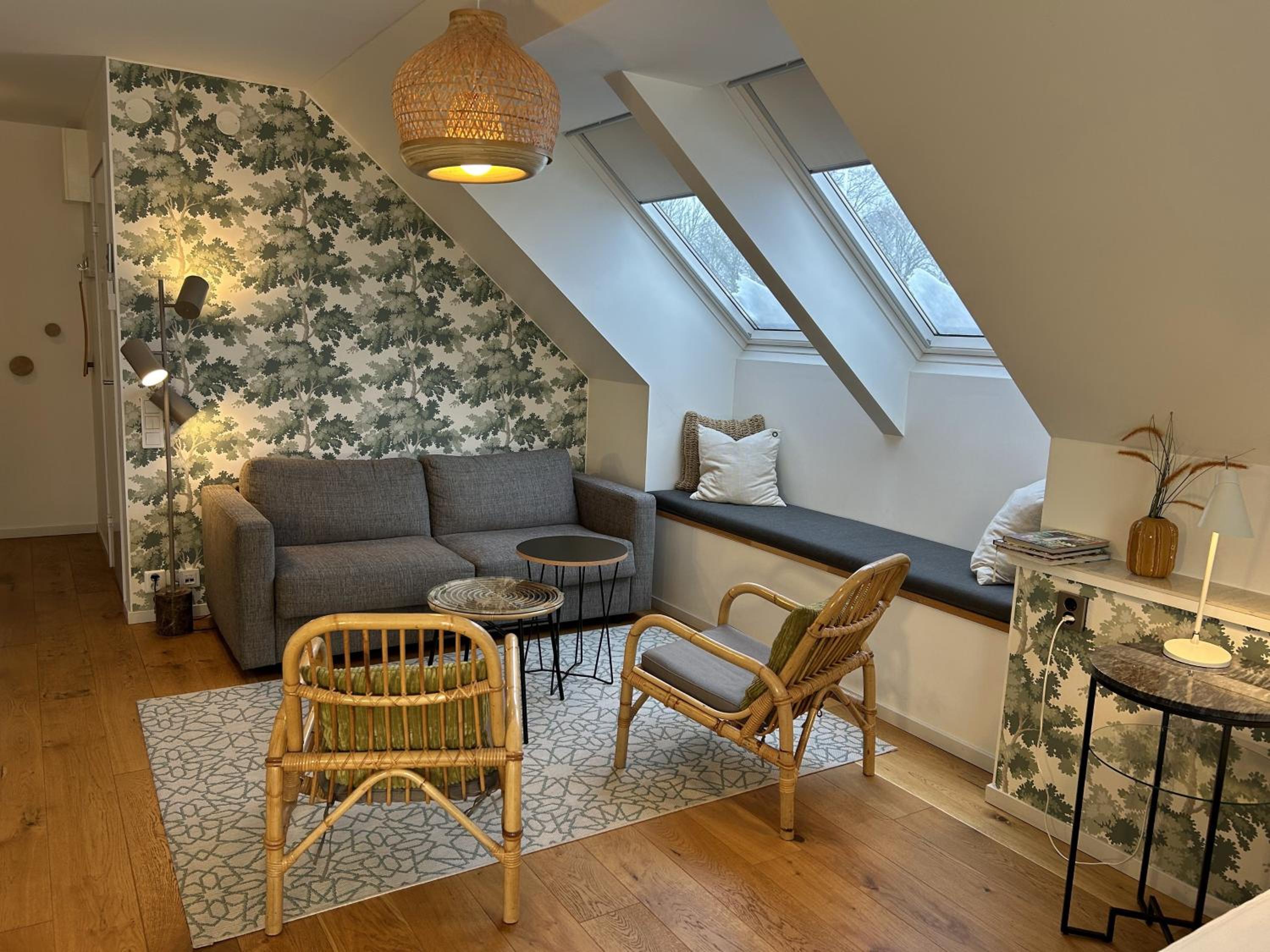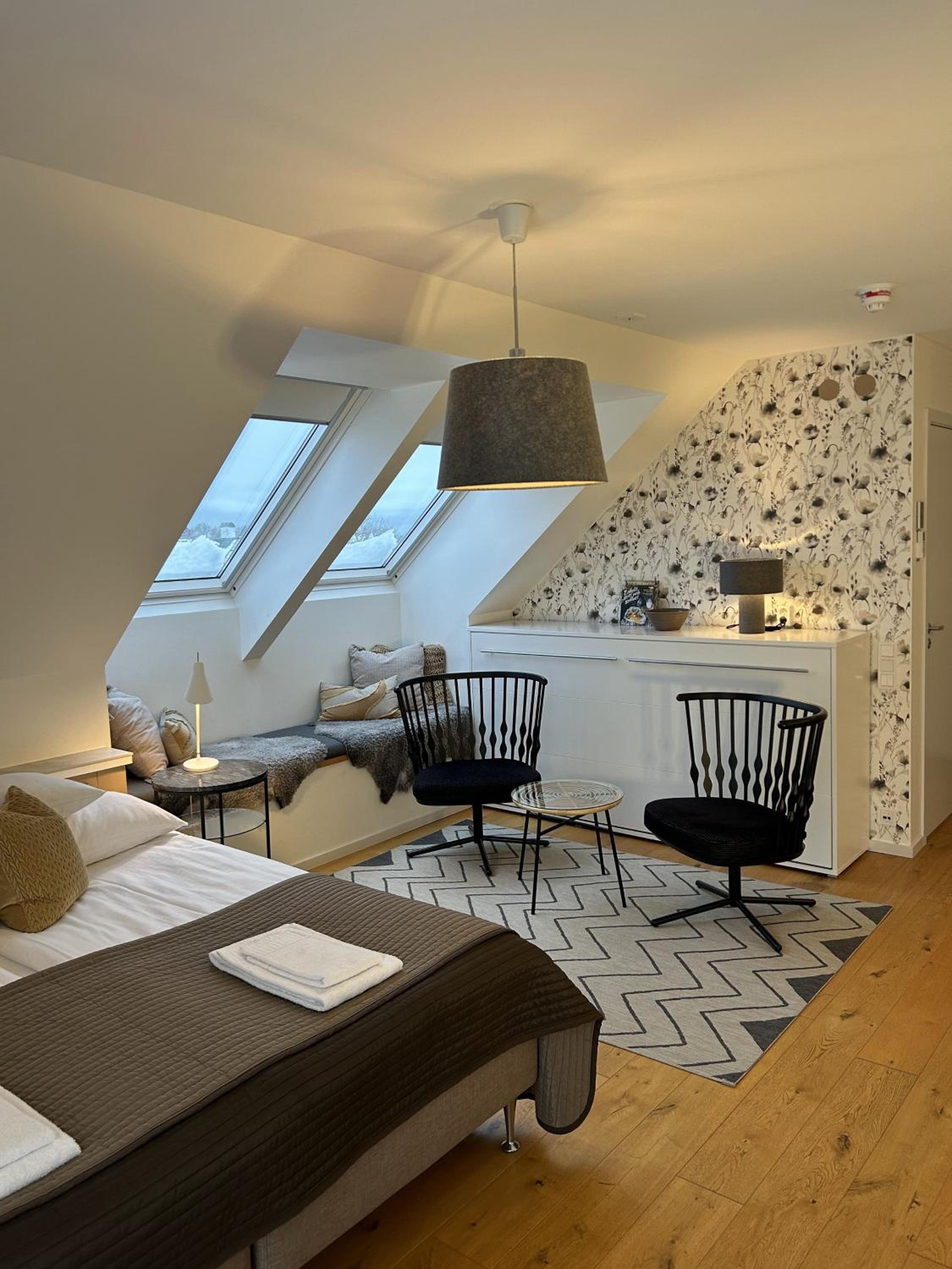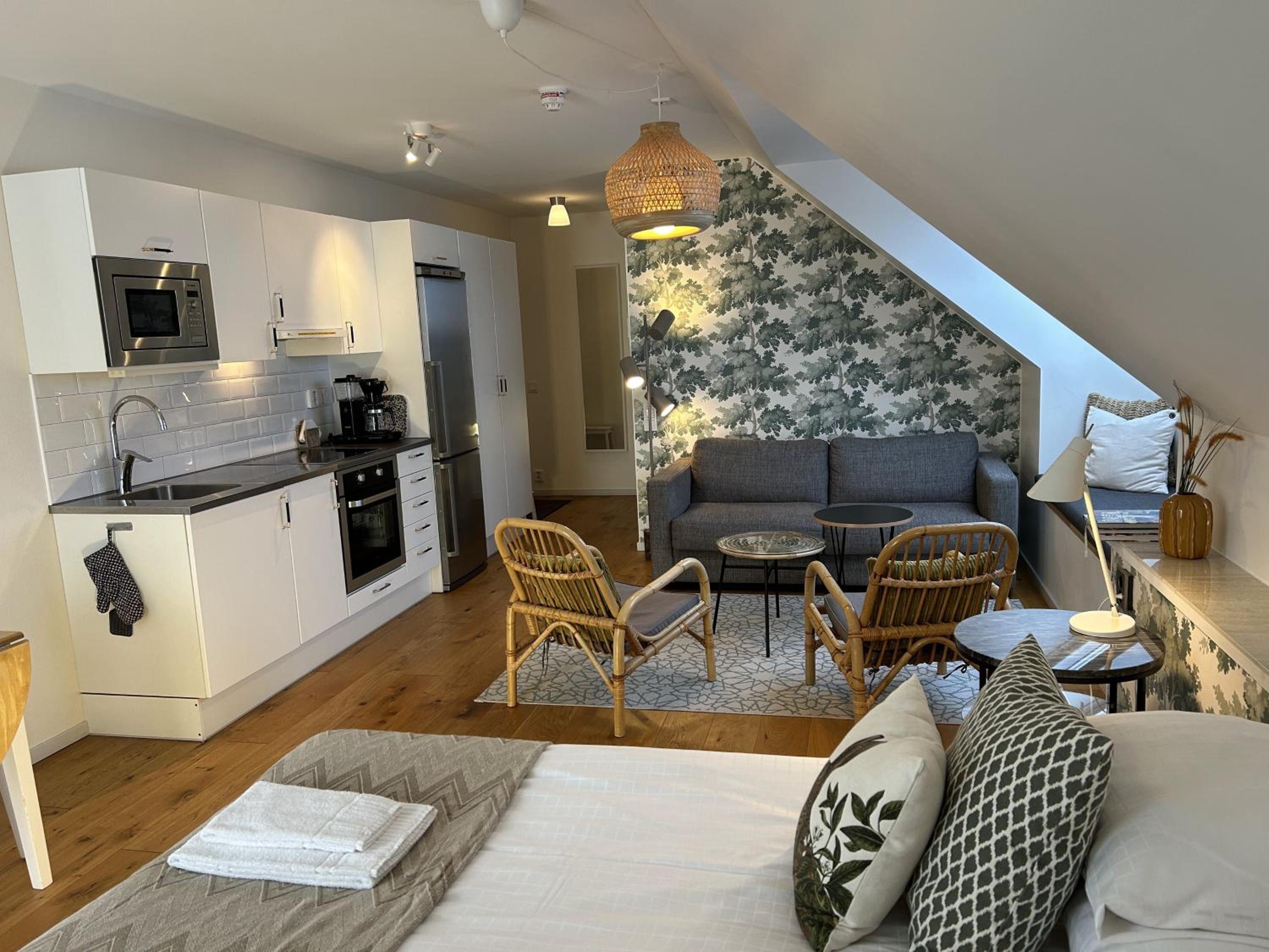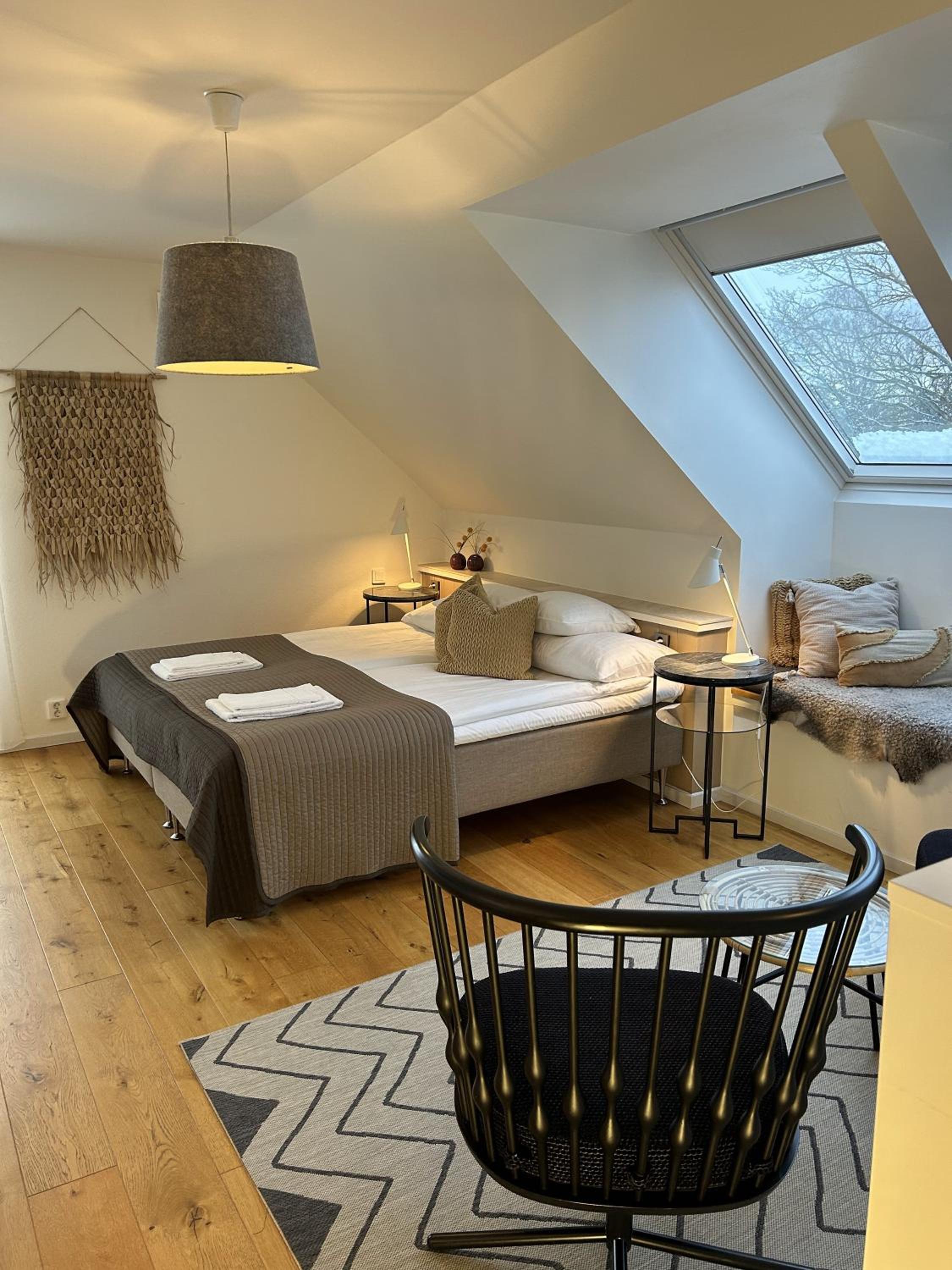 Lugnt läge utanför stan. Hög standard på rummet i minsta detalj.