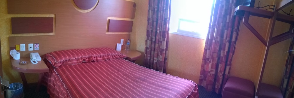 The hotel may look very aged, but the room is adequately sized with a spacious bathroom. It is not centrally located, and the price reflects that. Overall, it's a good value.