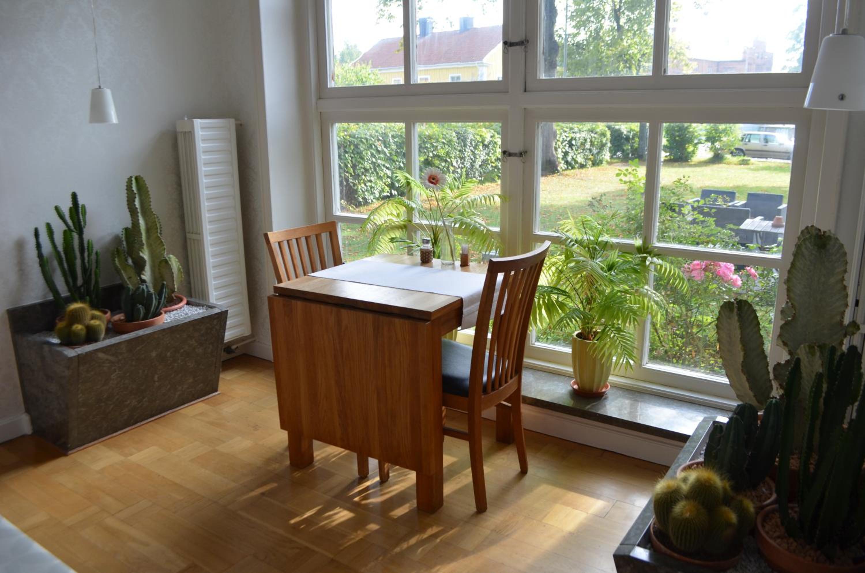 Vi tyckte även mycket om den äldre miljön. Den ljusa matsalen med stora fönster var utmärkt!