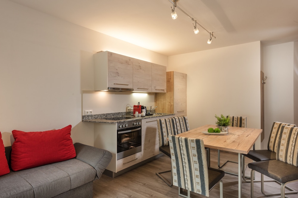 We took a last minute reservation, because we needed a place to sleep on our way through Austria. The place was really nice and everything was brand new or at least looked like that. This is an apartment, so we had kitchen/livingroom, small yard, bedroom and bathroom.I have never been in such a clean hotel. Not even fingerprints on taps or door knobs. Even all the forks, knives and spoons were organised precisely in the drawer. Beds were great and we got a really good sleep. Wifi worked well in the room, so thats definitely a plus. Only one thing could have been better since I didnt notice anything about the end cleaning fee when I booked the room. We stayed only one night so the cleaning fee would have been significant compared to room price. At the check-in the receptionist suggested himself that we should only pay half of the fee, since we had such a short stay. I assume this place is usually for people that stay longer. Receptionist was really helpful and gave us some tips and made the check in process really smooth. We arrived about 8pm, so he helped us and our luggage in the room first and said that he will do the paperwork and brought it to the room 5-10 minutes later. After a really good sleep we were very satisfied.