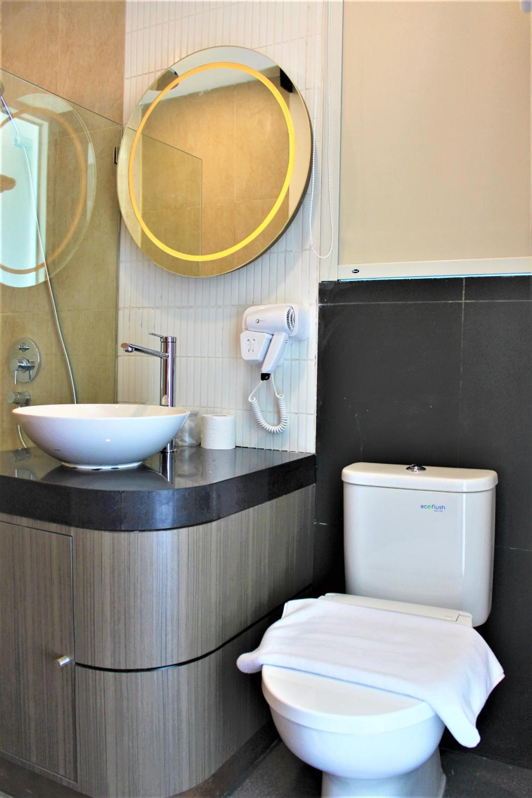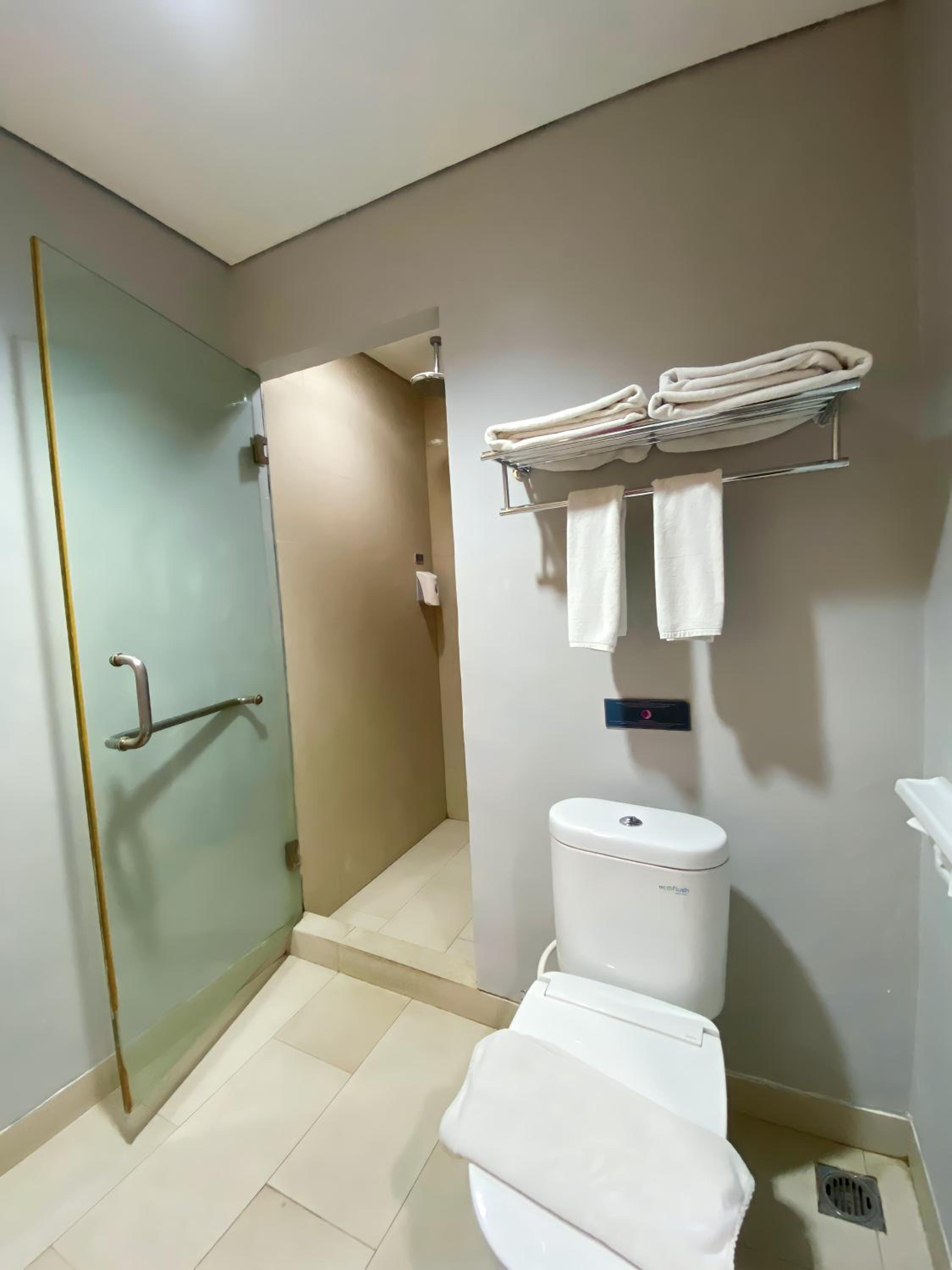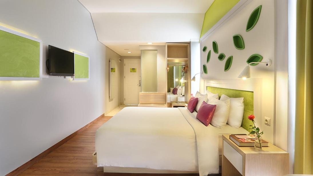 The well-appointed rooms at Shakti Hotel Bandung feature modern amenities such as air conditioning, flat-screen cable TV, and en suite bathrooms with complimentary toiletries. Guests can also unwind in the seating area provided in each room.
