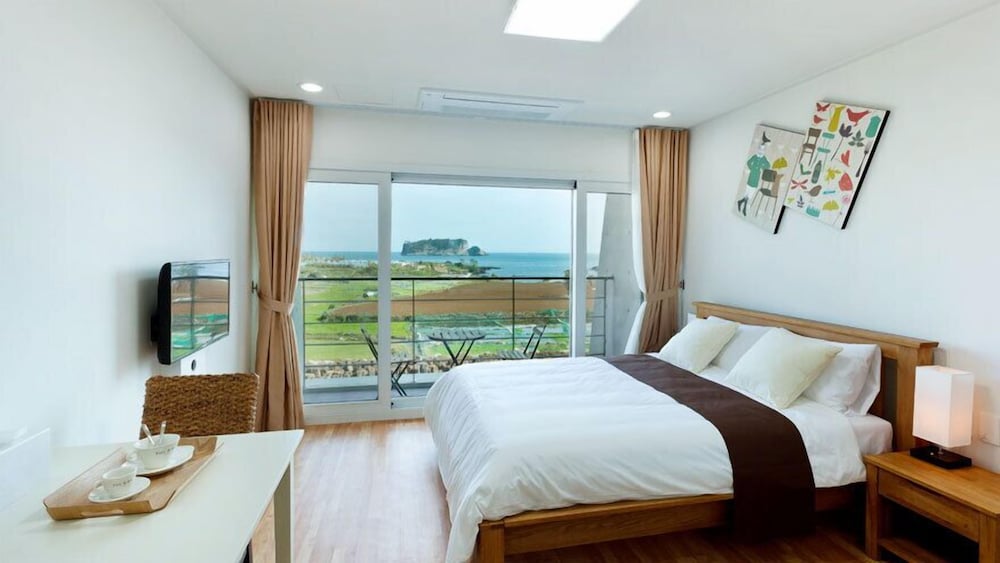 이번이 첫 제주도 여행이었습니다만 다행이 좋은 숙소에서 지낼 수 있어서 다행이었습니다. 직원분들 친절하셨고 주변에 편의점도 있어서 편했습니다. 무엇보다도 오션뷰 가 최고 였던것 같아요. 한가지 단점을 말씀드리자면 방충망이 찢어진 곳이 있어 그곳으로 날벌레가 들어오내요.수리를 하셔야겠어요.