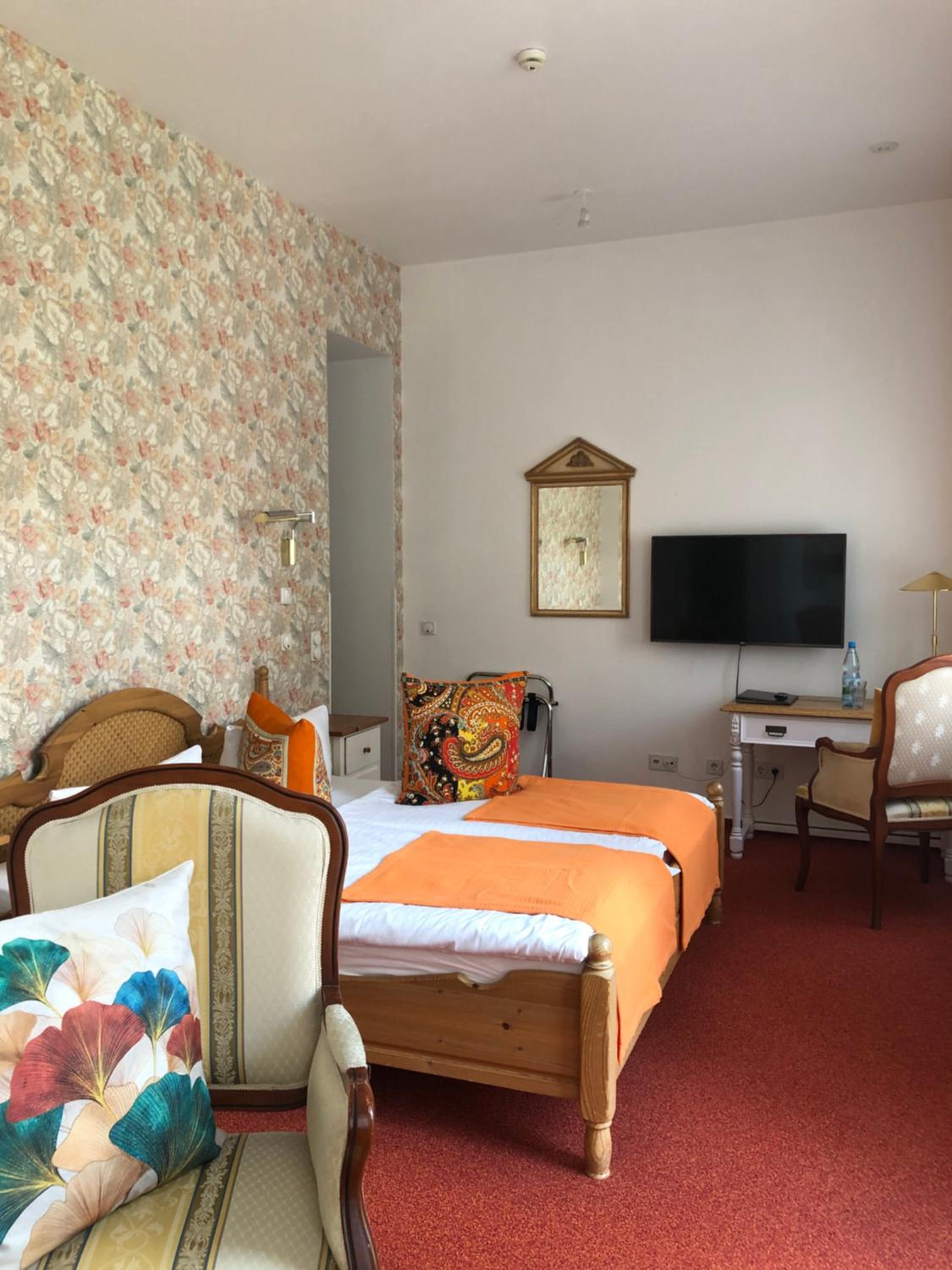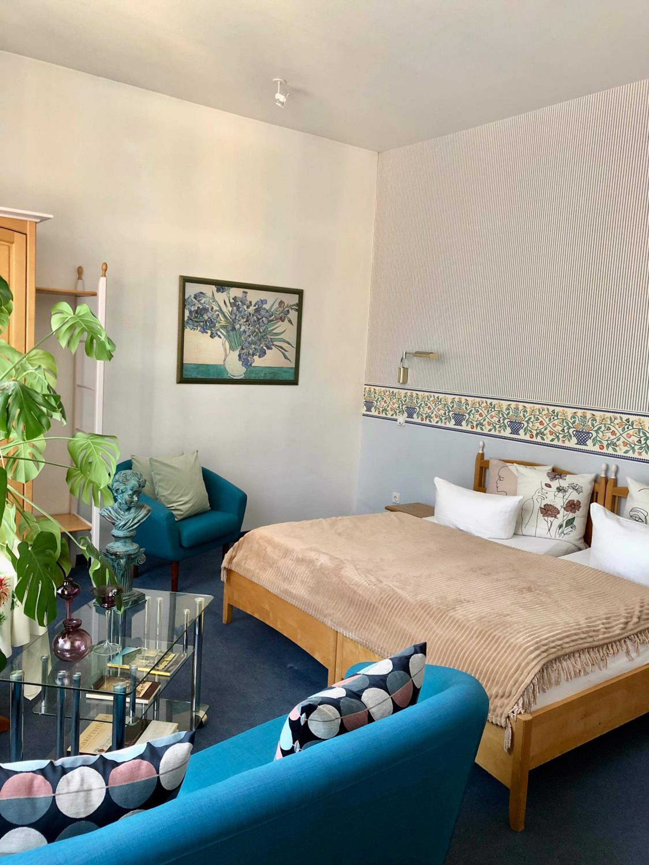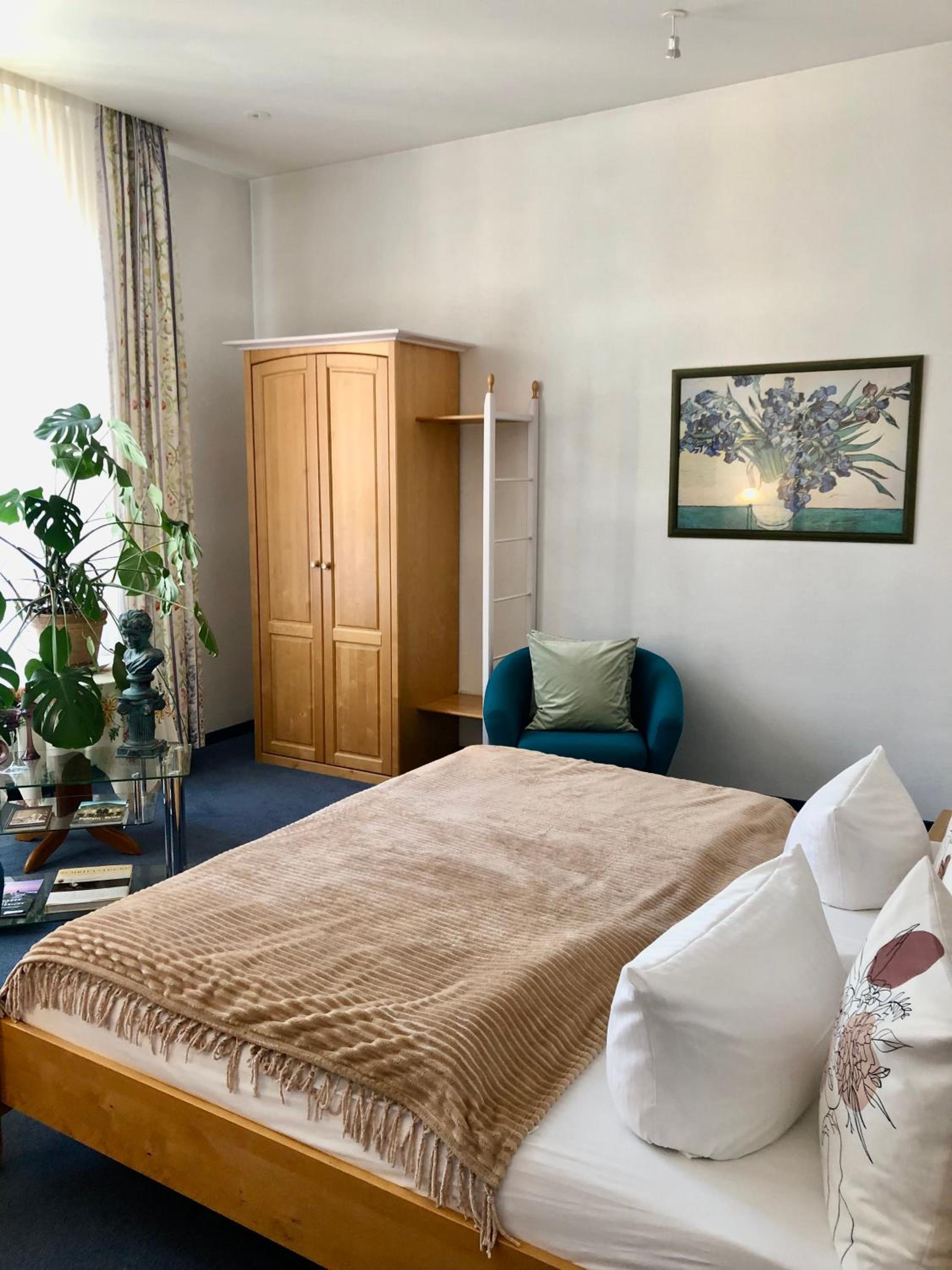 Die sehr zentrale Lage, das gute Frühstück mit den frischen Brötchen, der Parkplatz auf der Straße, alles chic.