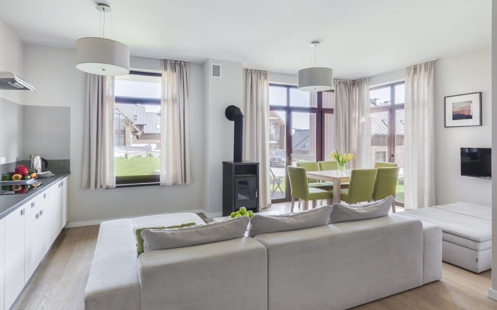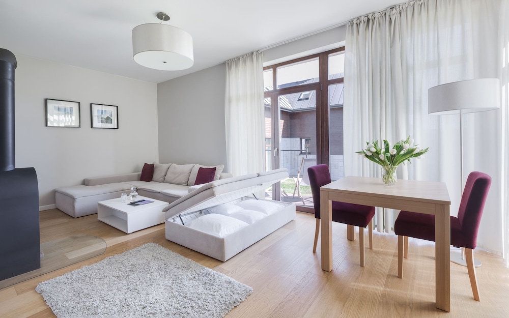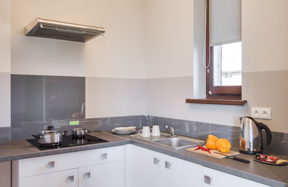 This place is very nice located, not far away from Karpacz and many others turistic attractions. All of this max. 20min. driving distance. House apartments are big, modern, but not well equipped. Not understand me wrong, you will find there almost all basic stuff, but cutlery, plates glasses are just enought. One bread knife will not do all the jobs in the kitchen. Simply, by going to this kind of place you expect more.