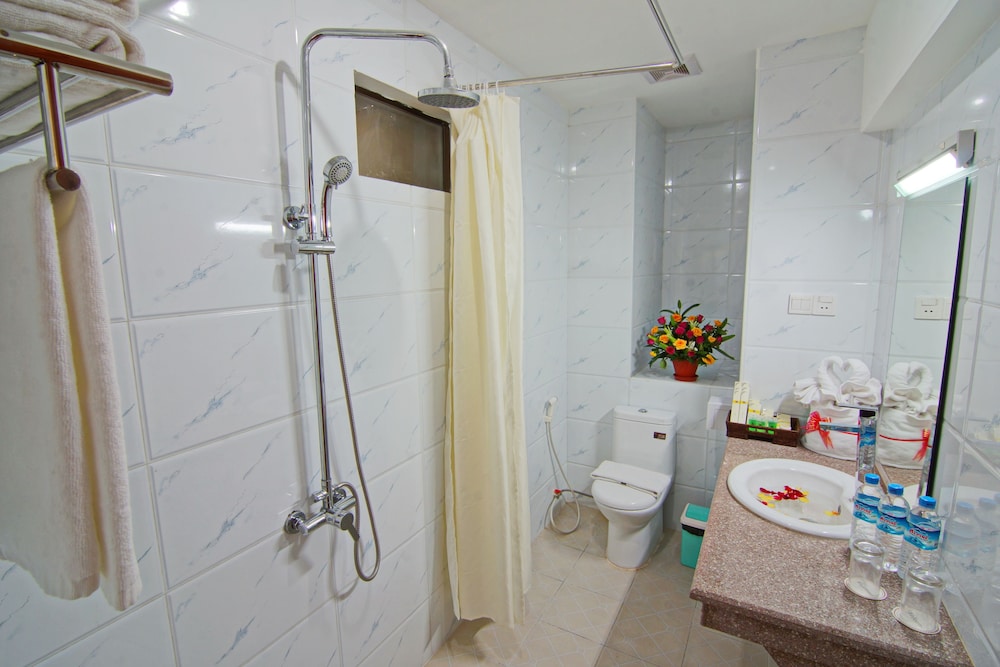 I was given a corner room, which was nice. There is only one elevator for the whole building. The bathroom trash can lid had stains, which grossed me out! The staff was helpful in arranging for a car to Innwa and Amarapura. It was a fairly comfortable stay except that there was no hot water when I showered. Breakfast was so-so.