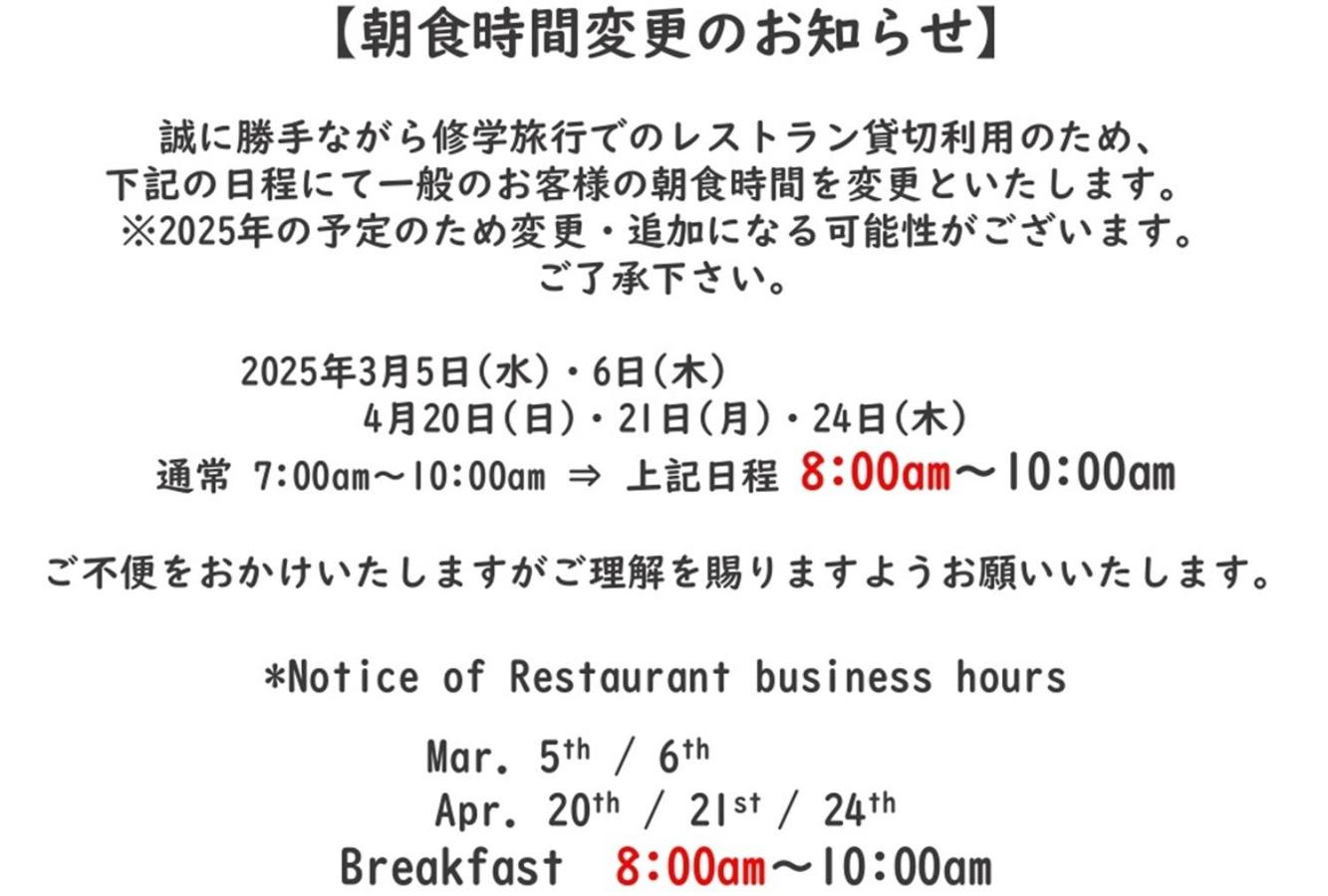 Children up to and including 5 years old stay for ¥500 per person per night when using an existing bed.