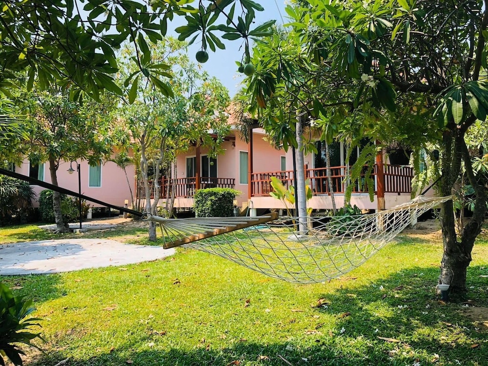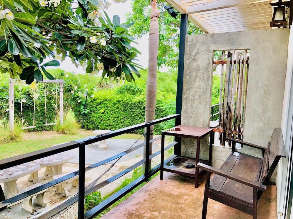 This is were we spent our honeymoon and it was amazing! There is so much to do in the area and to visit. We stayed in a private hut with our own balcony and bathroom. The Lady at reception was very nice to us and brought breakfast every morning. We didn't stay all day in the room because we wanted to visit other locations in Cha-am and Huan Hin. There is so much to visit that a week was not enough. You will definitely have to travel to Praya Nakon cave and Monkey Island, breath taking views. You will need to take a taxi to travel around the area, best to ask the reception and they will bring someone. At lunch time and dinner we always went to Factory Outlet to eat at Suzette, they make the best food with cool presentation! The shopping centre/mall is 10 minutes away in Huan Hin.