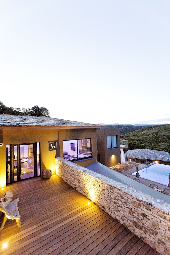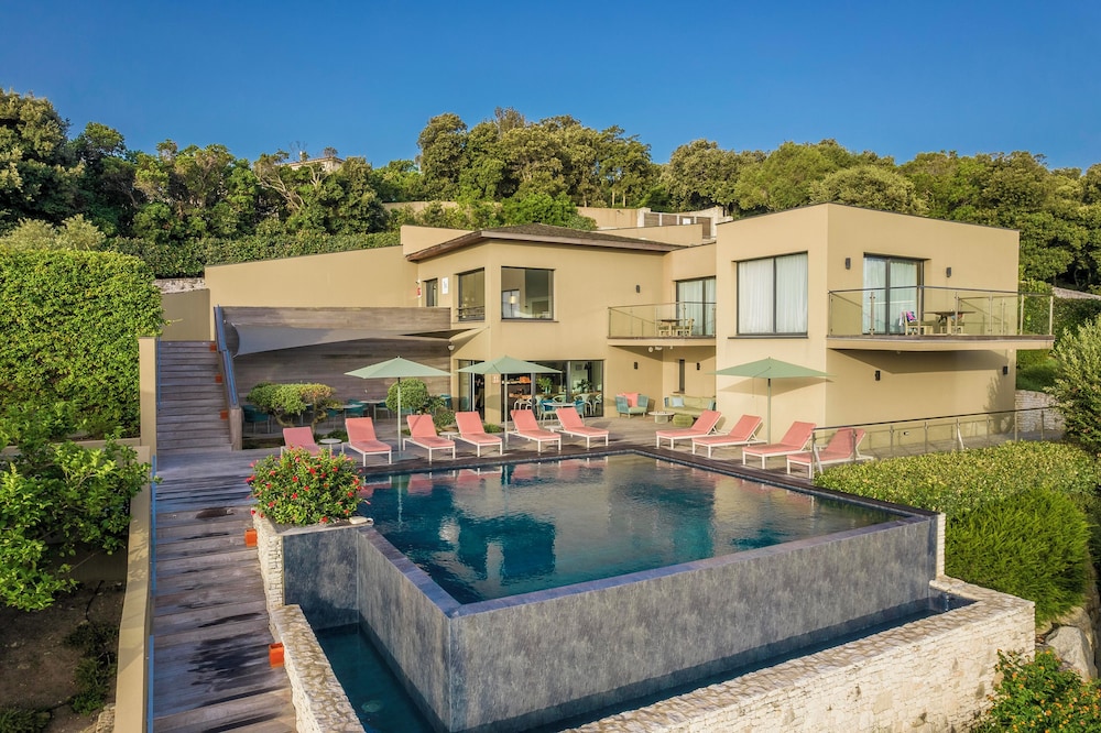 Un très bel accueil, hôtel très calme, propre dans un bel environnement.Une piscine à débordement avec une vue panoramique sur le maquis.