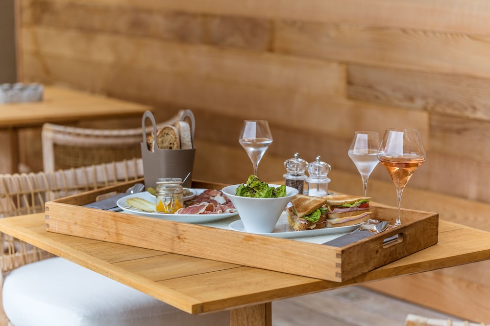 Individually-wrapped food options are available through room service