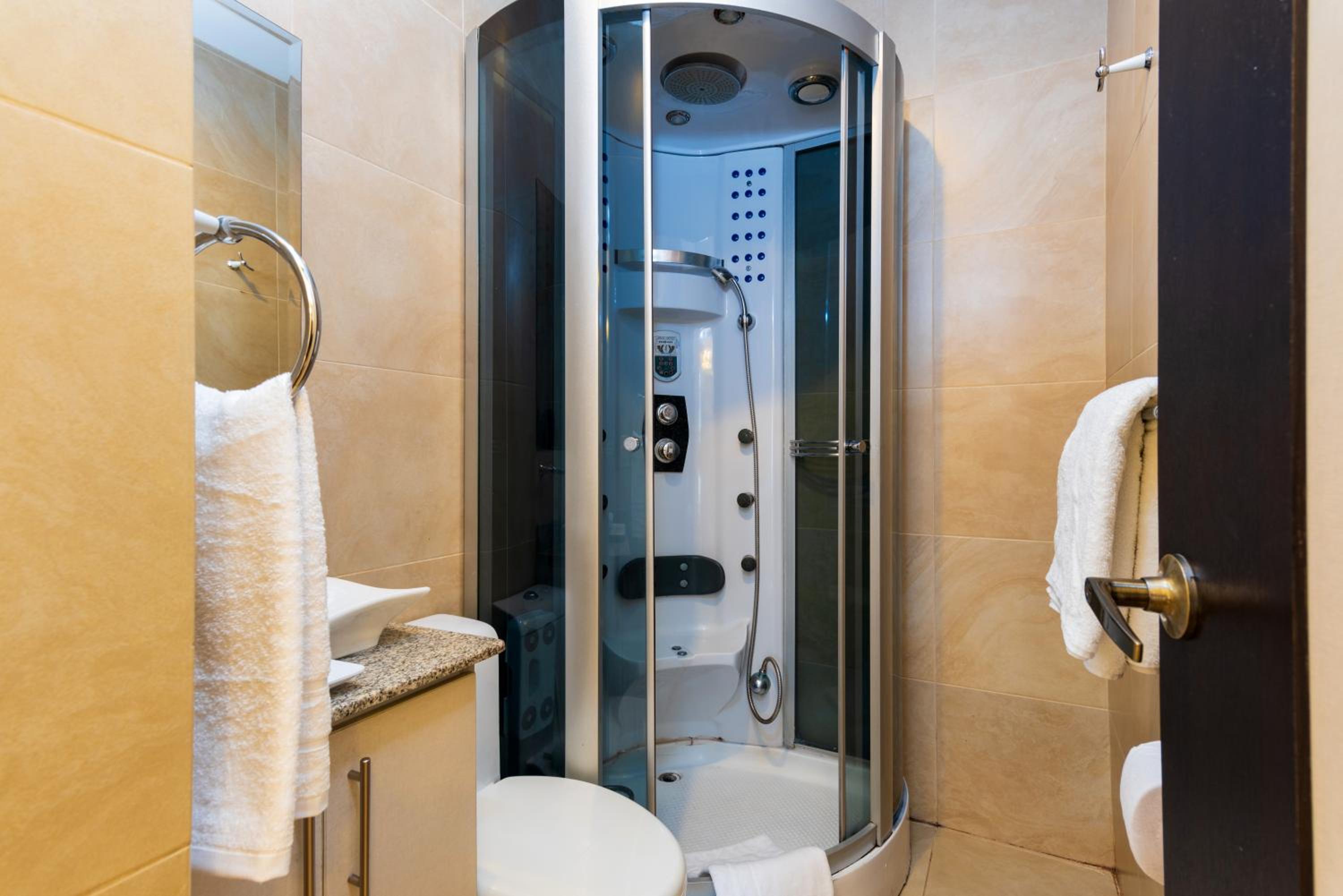 The rooms at Del Parque Hotel & Suites are elegantly designed, offering comfort and style. Each room features satellite TV, a private bathroom with complimentary toiletries, and a working desk, ensuring a relaxing and convenient experience for guests.