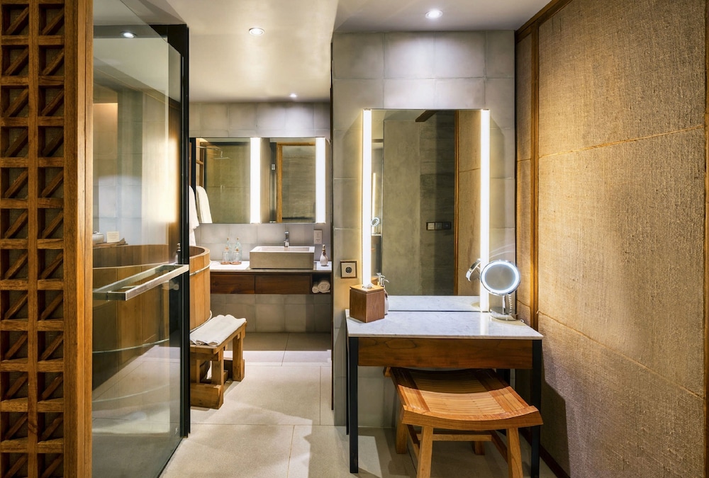 The layout of the room was very good. The bed was very comfortable. There was a smart TV, so that was a nice bonus for rainy days. The soaking wooden tub was nice, it did leak all over the floor though and got some of our clothes dirty. However, The staff was super helpful, and did all of our laundry at no extra cost. The staff is what makes this place nice, because there are some areas where you can see the wear and tear, and the patch up work wasn't done properly. The pool was small relative to the number of guests, and the food at breakfast place and copper kitchen was not good at all. Overall, the place was not on par we've stayed at in Bali