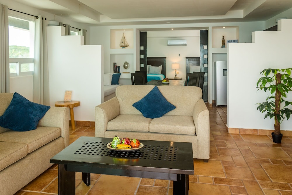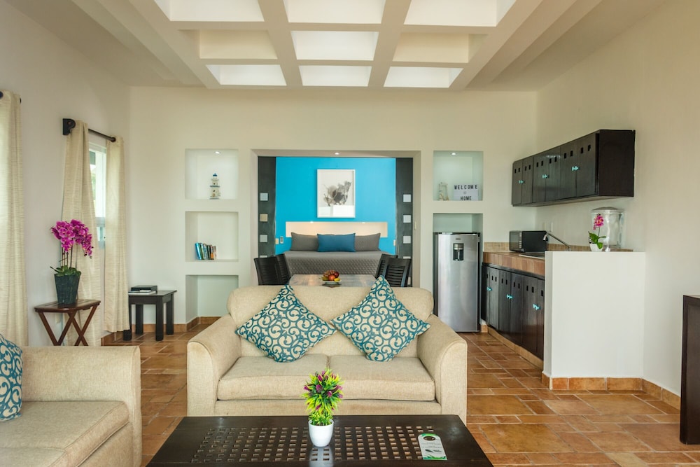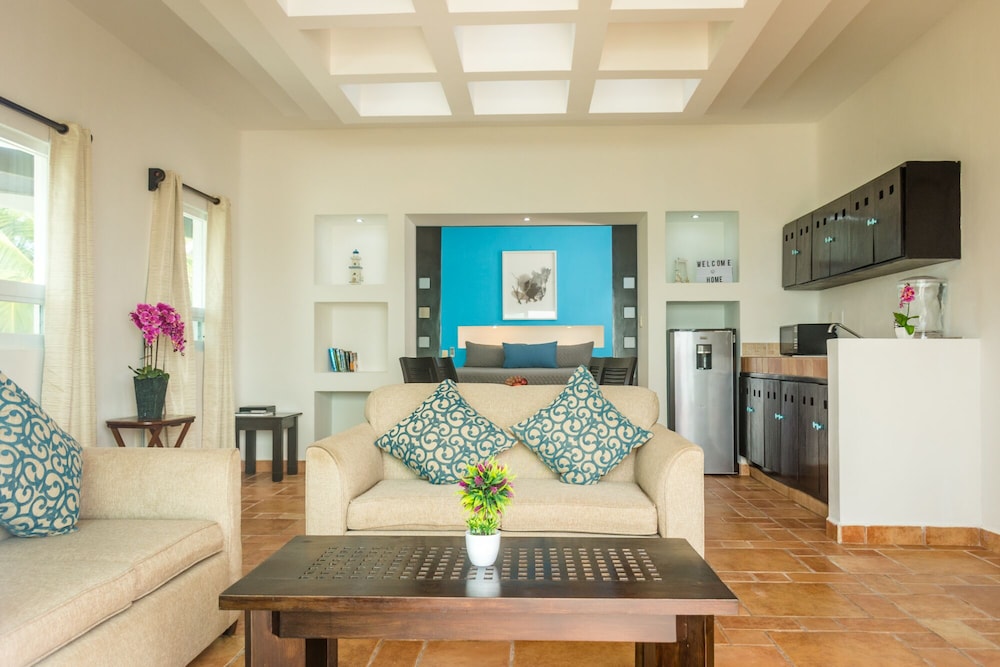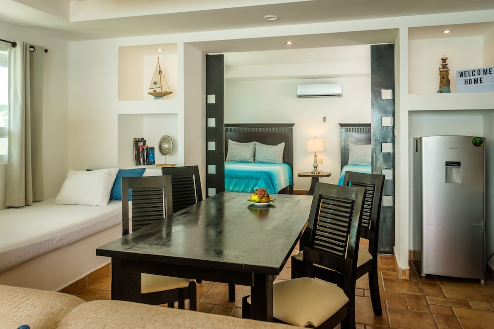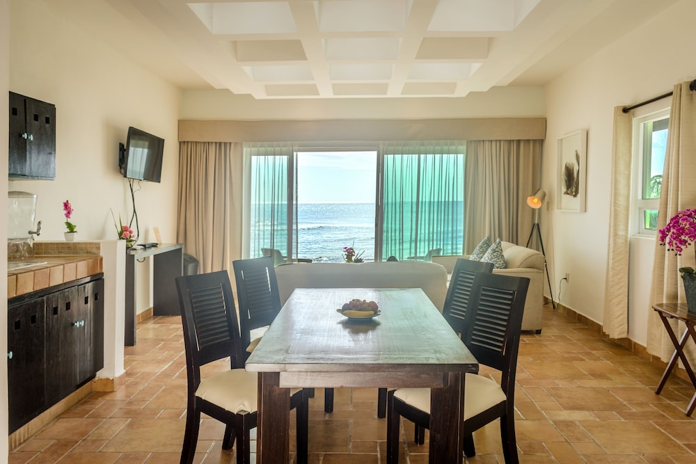 Muy buen servicio, tdas las personas que nos atendieron durante nuestra estadía fueron muy amables y brindaron muy buena atención desde que llegamos hasta nuestra hora de salida. El hotel en general es muy cómodo y se siente más como un departamento que un hotel, por lo que la estadía fue acogedora y relajante. Otro punto positivo es la cercanía con el mar, con solo dar unos pasos fuera de tu cuarto puedes disfrutar de él, el cual es perfecto para nadar y reposar en la arena, ya que la playa es hermosa y muy limpia, el mar tiene un azul turquesa muy bonito, y la marea es perfecta para aquellos que disfruten de nadar o simplemente descansar en la orilla. En mi opinión es el mejor lugar para vacacionar y descansar.