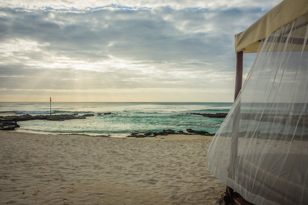Un paraíso en Tulúm a un precio accesible con playas dinámicas, rocosas y una pequeña península hermosa, es una playa que no encontrarás en ningún otro lugar, la caleta es preciosa al igual que el cenote que tienen dentro del hotel. A mi parecer es un negocio familiar, ya que el lobby cierra a cierta hora y no encontrarás a nadie en recepción más que una que otra persona velando el lugar, me parece un poco preocupante ese tema pero a la vez manteniendo seguro el establecimiento podría ser una de las mejores experiencias. Las habitaciones están alejadas de las áreas donde los turistas pueden entrar con un day pass, así que tú tendrás tu espacio privado y puedes ingresar alimentos y bebidas a tu habitación para realizar un picnic en tu balcón o bien en tu playa privada, siempre y cuando mantener limpio.