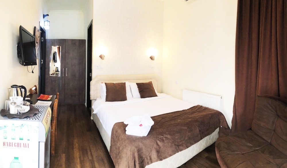 We booked a family room with balcony. The room is enough for 5 adults with luggages, toiletries and fresh towels provided everyday. I like the breakfast choices, especially the Georgian bread and cheese. Nice location, quiet and safe neighborhood. Friendly staff and speaks English well. Will go back in the future and recommend to friends.