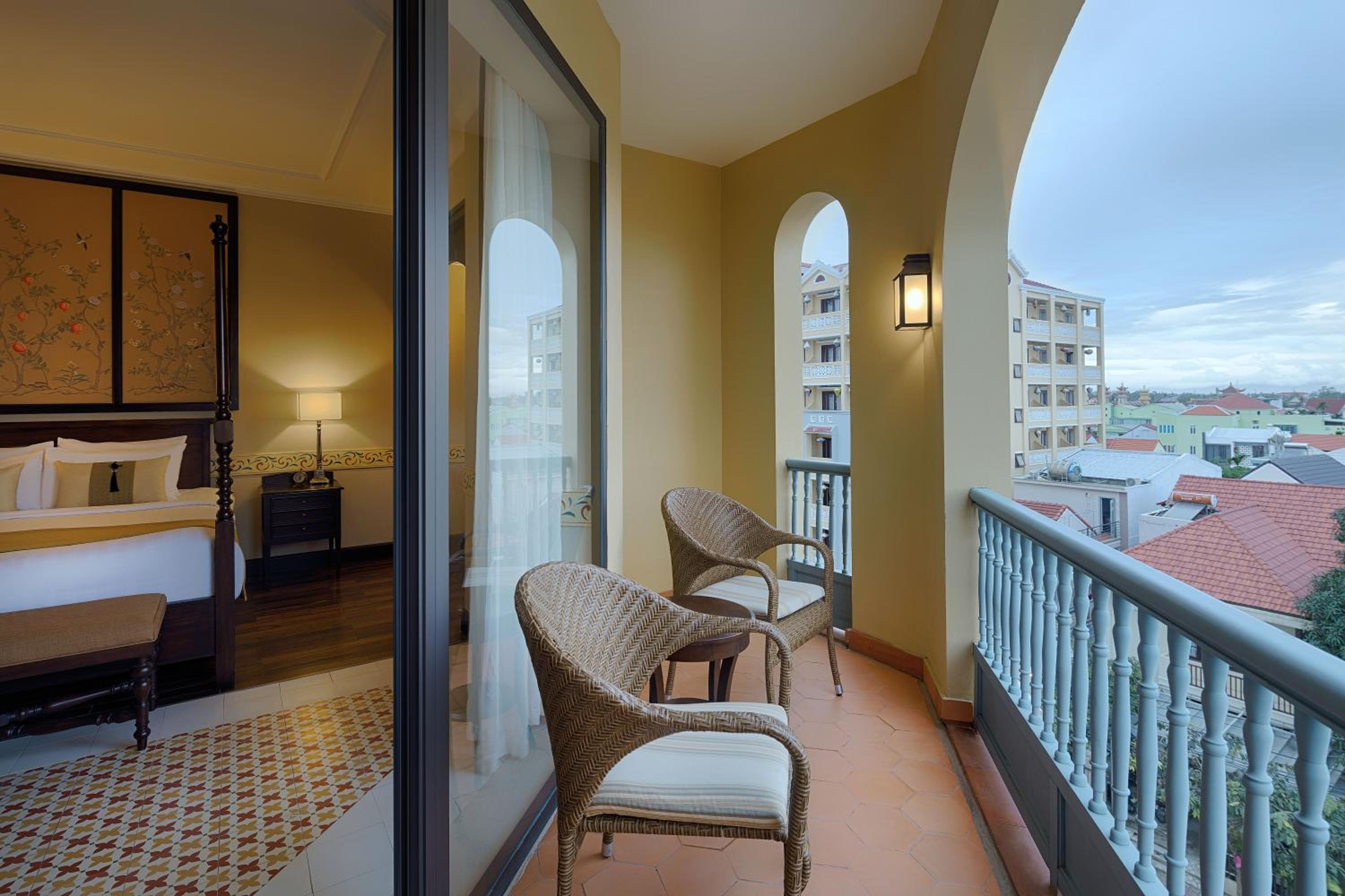 Luxurious Accommodation: Experience a fusion of Hoi An charm and neoclassical Portuguese elegance in our air-conditioned suites with city views from the balcony and modern amenities.