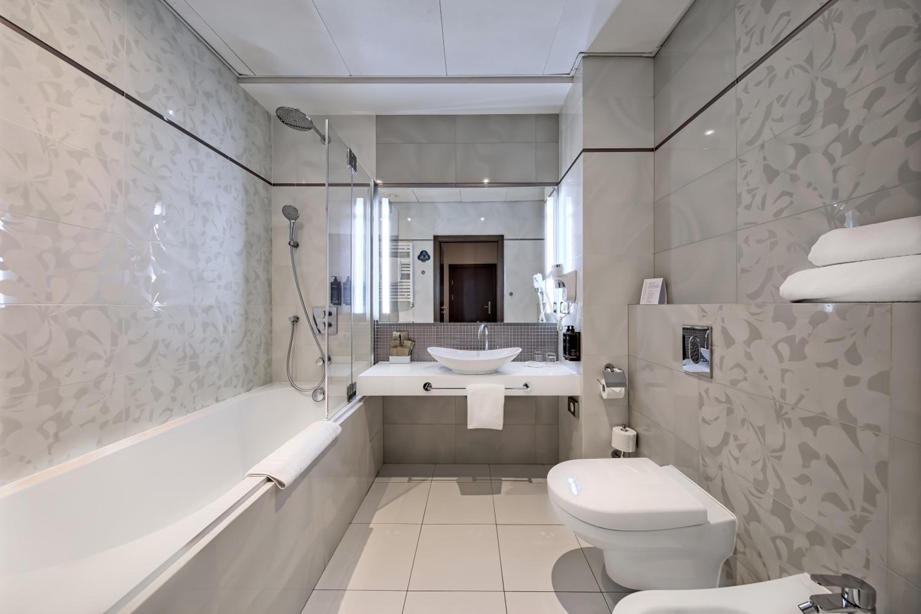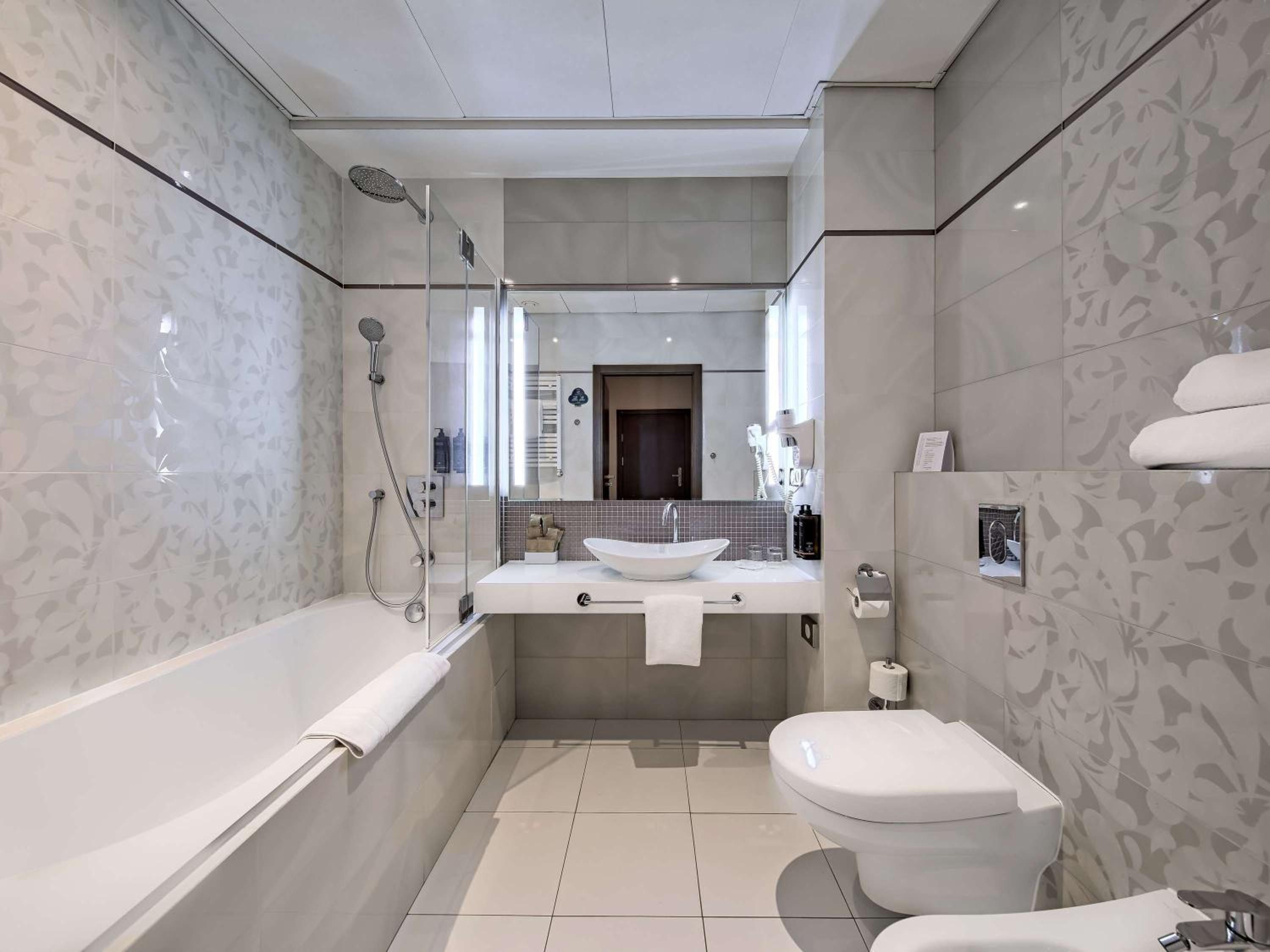 Experience comfort in every room with air conditioning, free WiFi, flat-screen TV, minibar, and safety deposit box. The private bathrooms are equipped with all essentials including a hairdryer for your convenience.