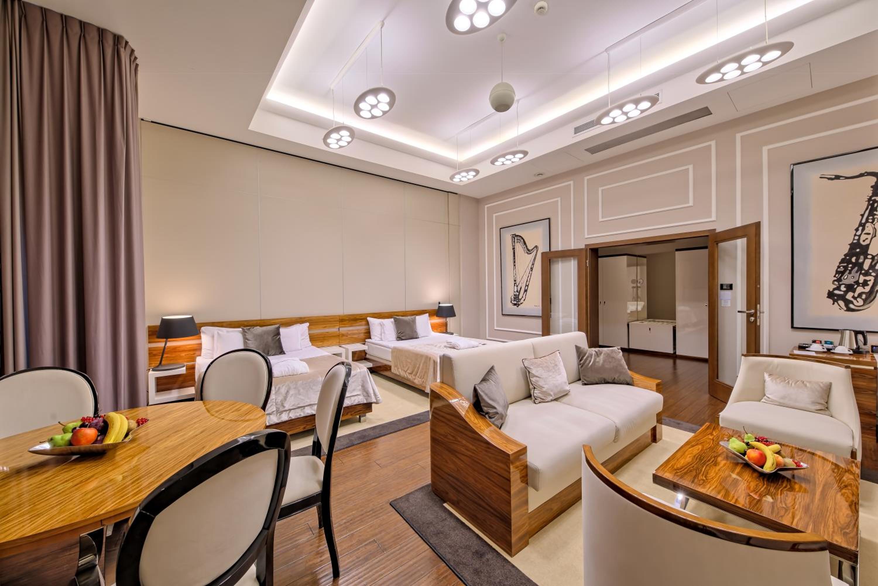 Indulge in relaxation at the fitness room, sauna, and roof terrace boasting a stunning panoramic view. Host events effortlessly with the banquet facilities available on-site.