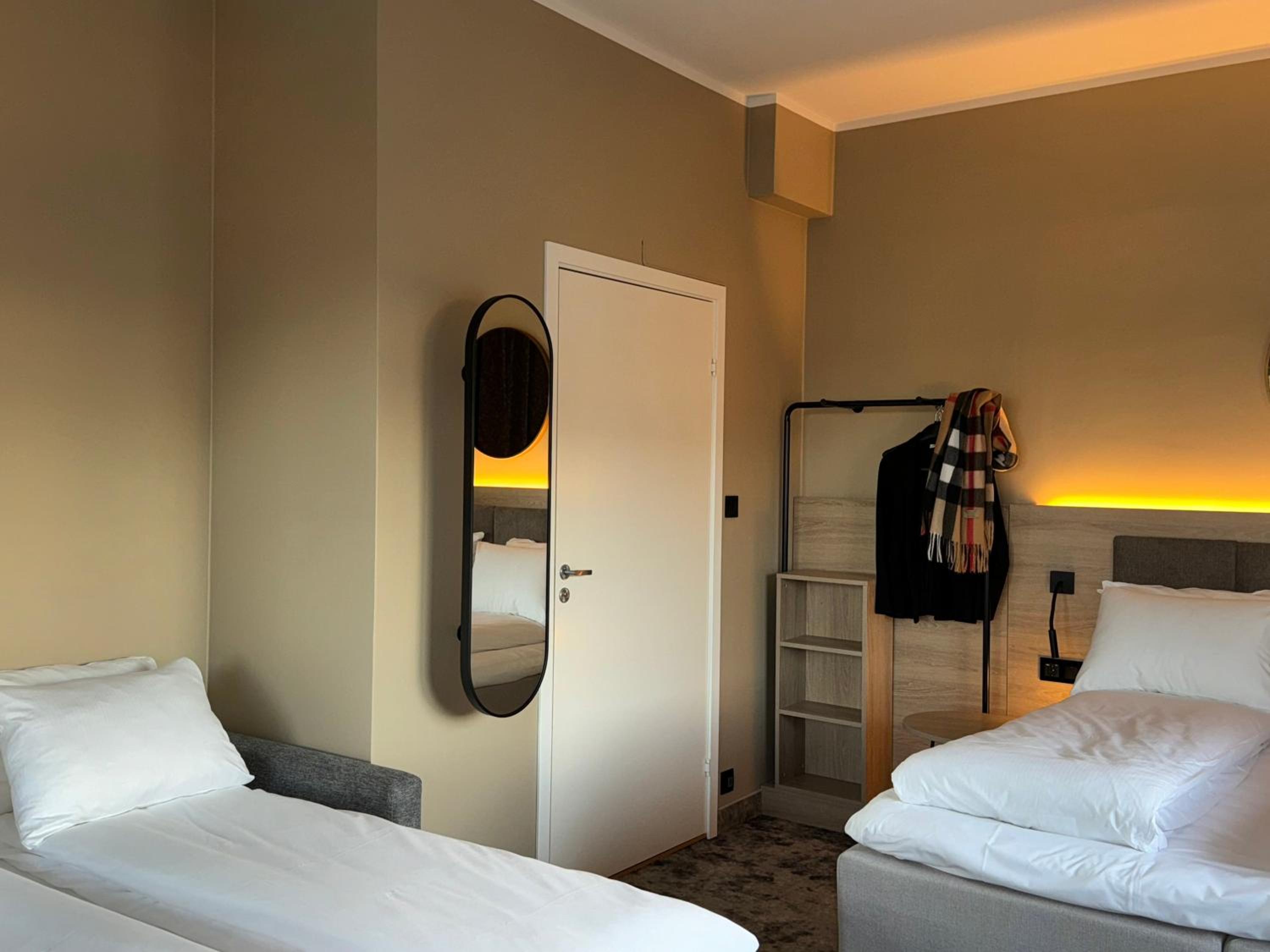 Manglet varme i gulv på bad, var heller ikke noen mulighet for å regulere den opp... fliser på gulv uten varme - ubehagelig å dusje... Bortsett fra det, var rommet bra.