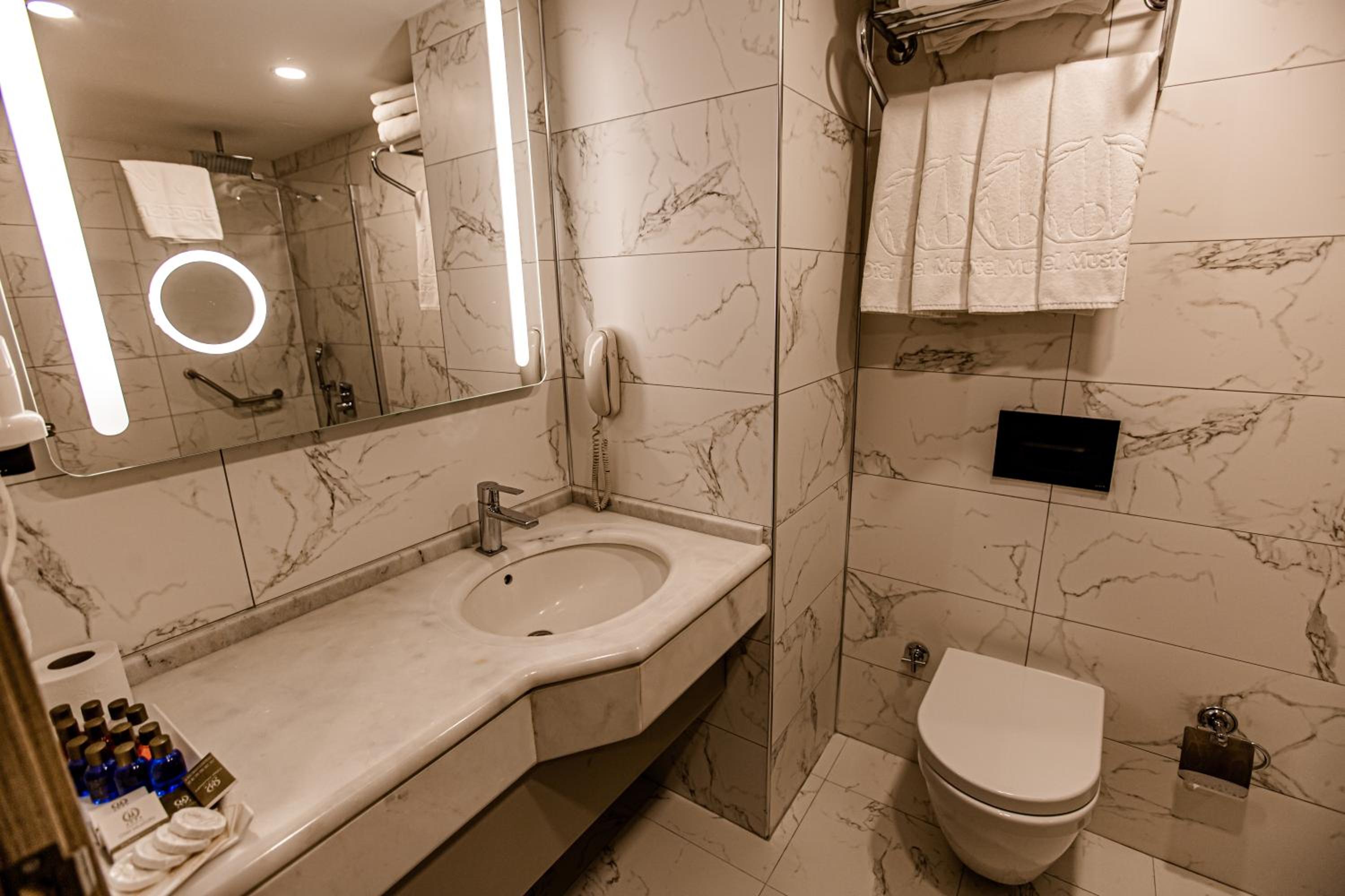 Enjoy modern rooms with air conditioning, free Wi-Fi, satellite TV, and a minibar, all decorated in soothing soft colors at Hotel Mustafa.