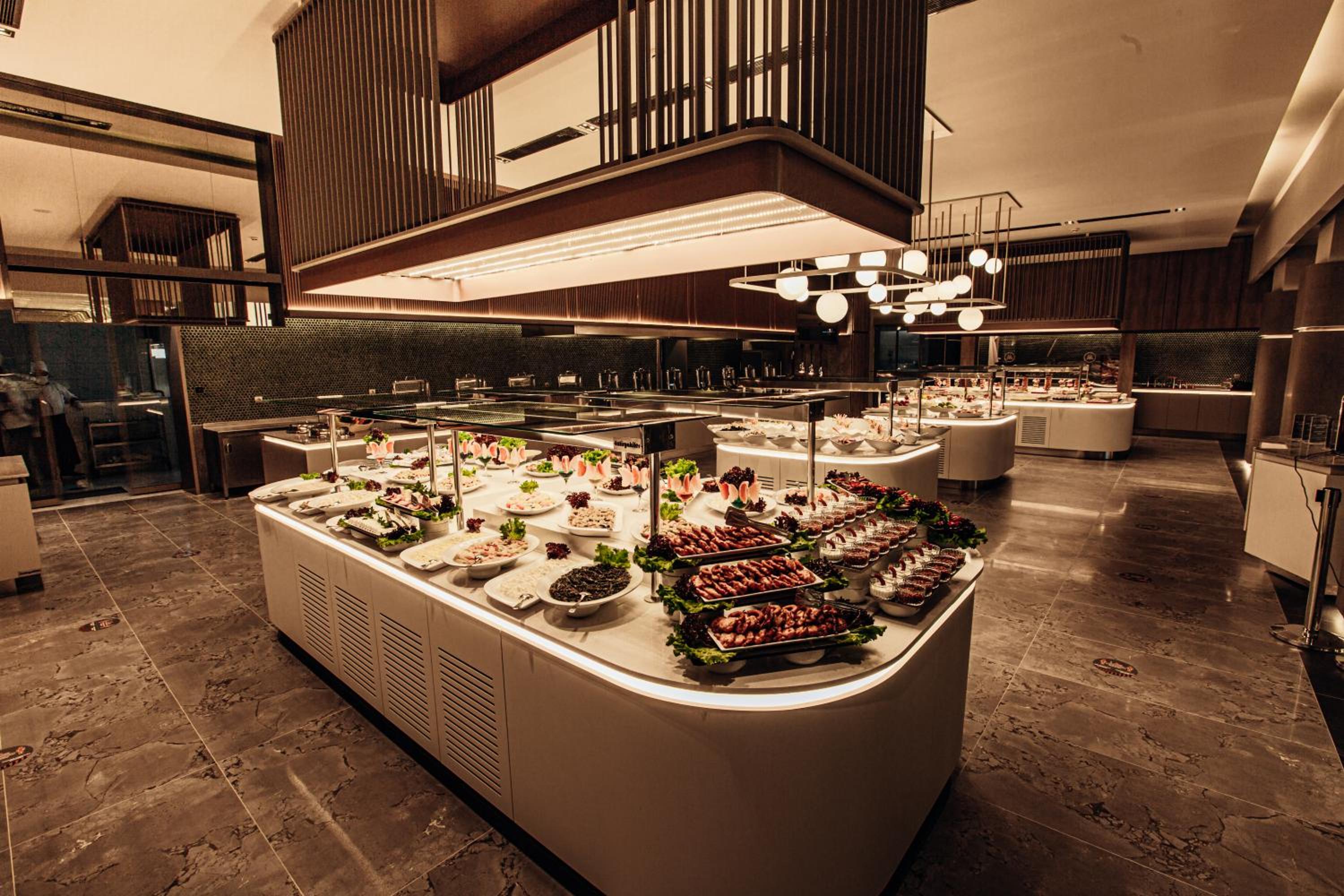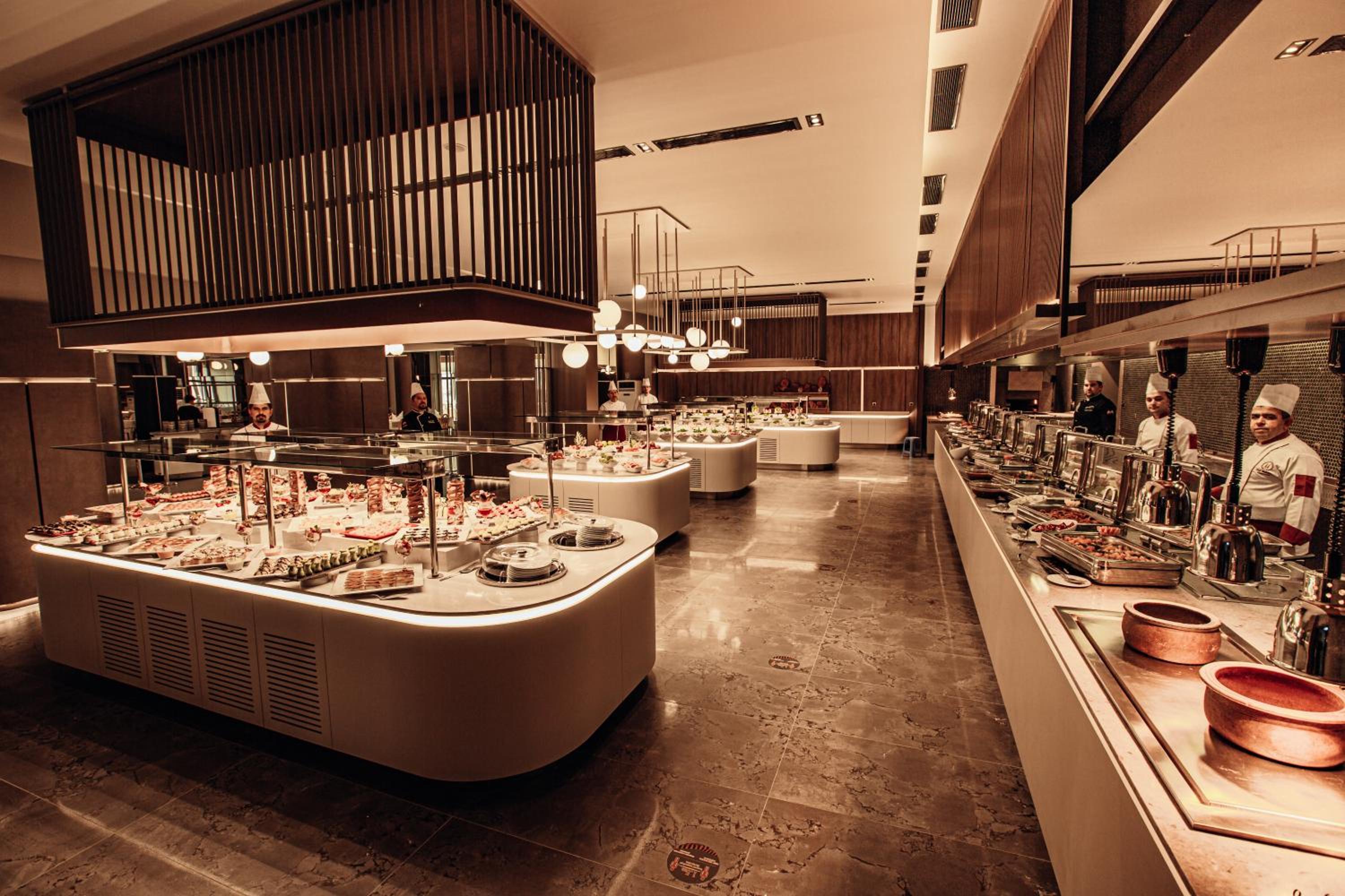 Indulge in international cuisine at the open buffet restaurants or savor hot and cold beverages at the bar. The outdoor dining area by the pool offers a picturesque setting for your meals.