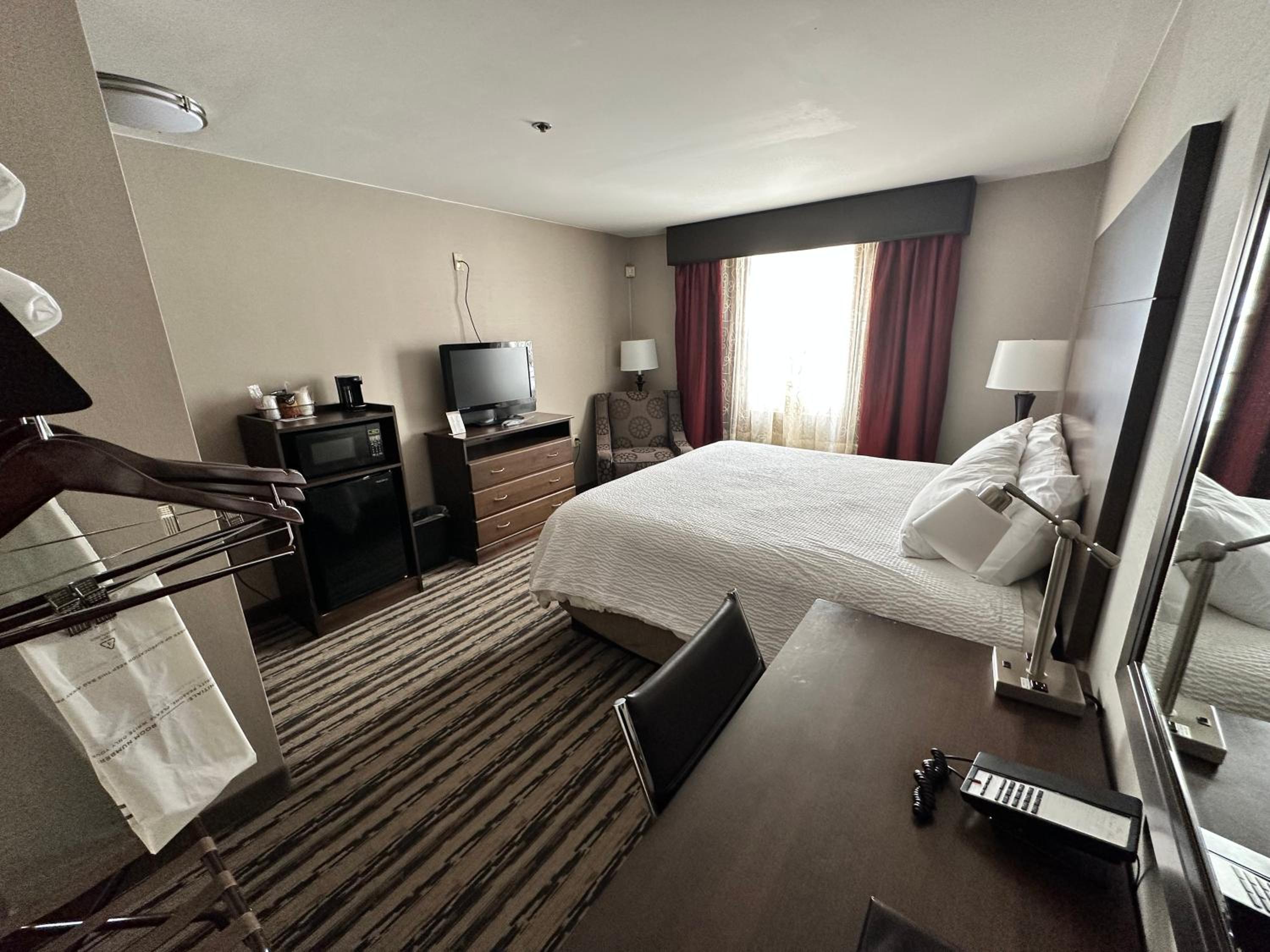 We were met with friendly service at check-in. Our room was clean. We appeciated having a microwave, mini fridge and coffee maker. We used the hot tub and fitness room.