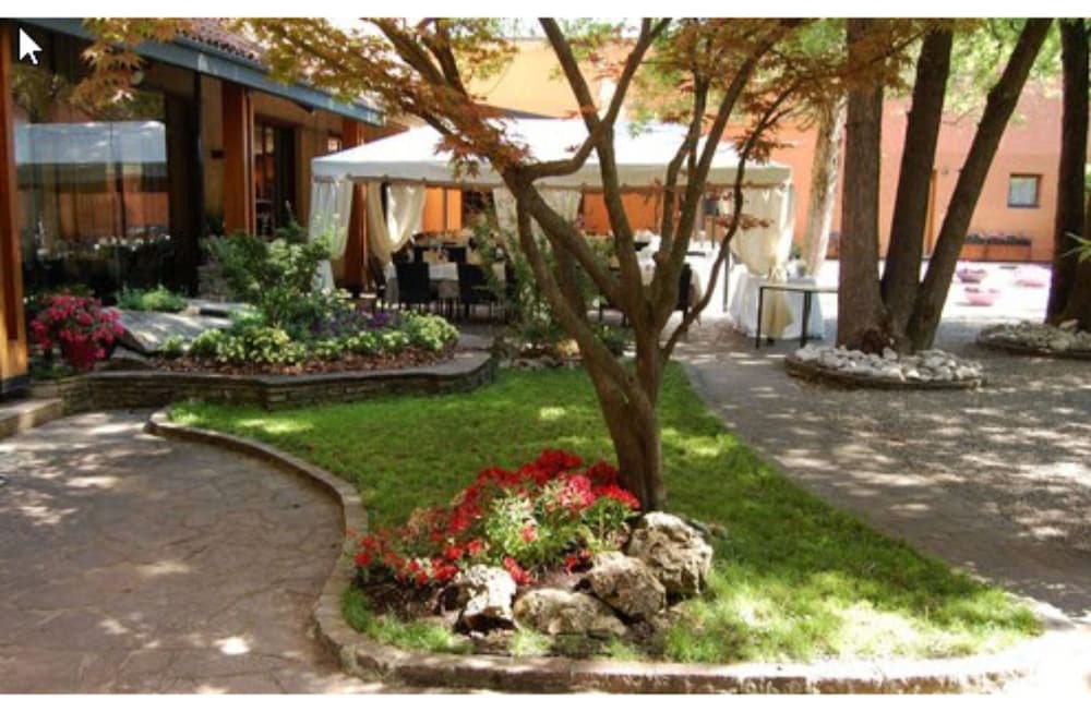 Hotel ad Arcore con stanze un po datate. Nonostante l'insonorizzazione limitata non si è disturbati grazie alla buona educazione degli ospiti. Ottimo ritorante che ha vita indipendente. Colazione discreta: salato, dolce e frutta ma con scelta limitata. Bar per il caffé. Ampio parcheggio nel parco.