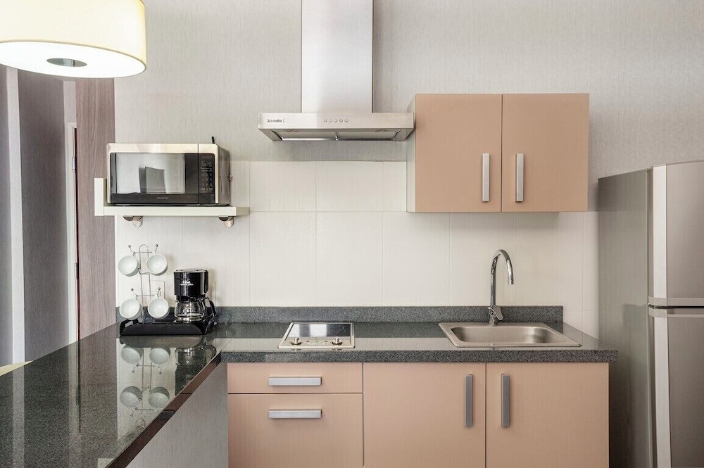 El desayuno incluido está bastante bueno, la cama es cómoda como sus almohadas, la alberca es pequeña pero muy buena y relajante, y al estar dentro de galerías tienes varias opciones de comida cerca.