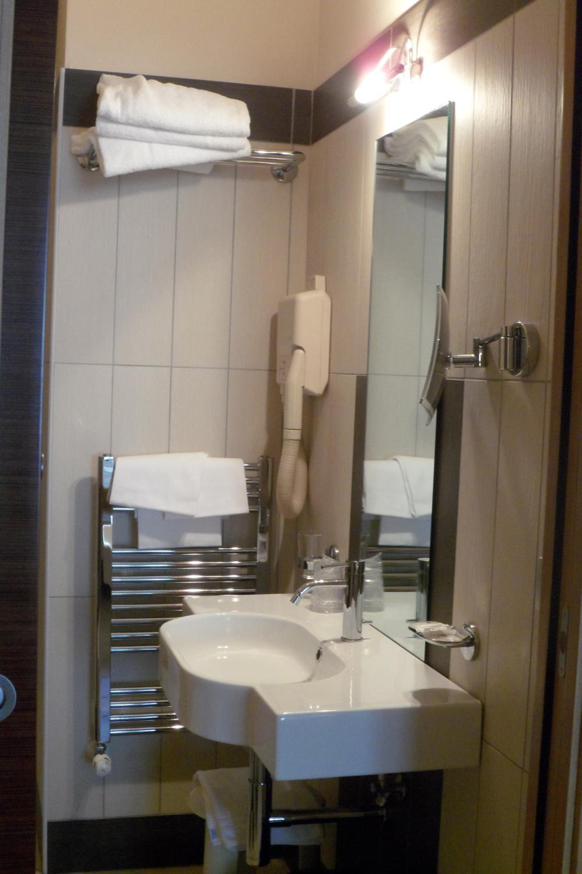 Camera singola piccolina ben arredata. Il bagno con una balla doccia grande. Una buona colazione mediamente fornita.