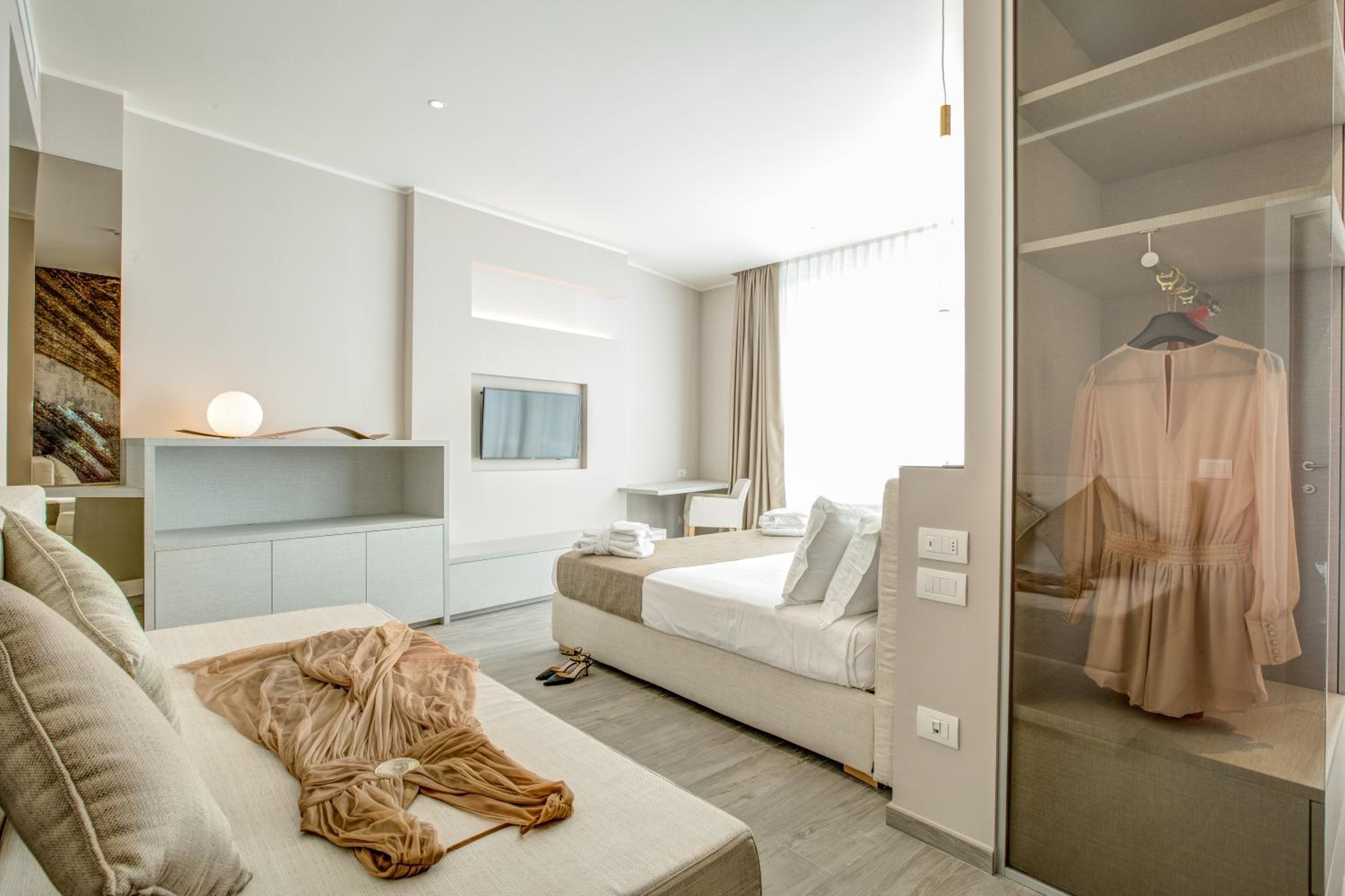 A szoba nagyon jól átgondolt és felszerelt, egyedül vízforralót vagy kávéfőzőt hiányoltunk. Az ágy nagyon kényelmes volt, a takarítónőnk ( Speranza) is remek munkát végzett. Kérésünkre azonnal biztosítottak külön takarót az alváshoz. A szálloda nagyon szép helyen fekszik, az ételek kiválóak. Kiemelném a felszolgálónkat, Yury-t, aki igazi vendéglátósként, barátként áll a vendégekhez. A recepción, Lucia szintén mindenben rendelkezésre állt. Az ittlétünk nagyon kellemes volt. A medence 100m-re található, a tengerpart mellett, de ez egyáltalán nem okozott kellemetlenséget, szépen karbantartott, élvezhető rész. Amit hiányoltam, hogy a medence bárnál nem lehetett alkoholos italt rendelni.