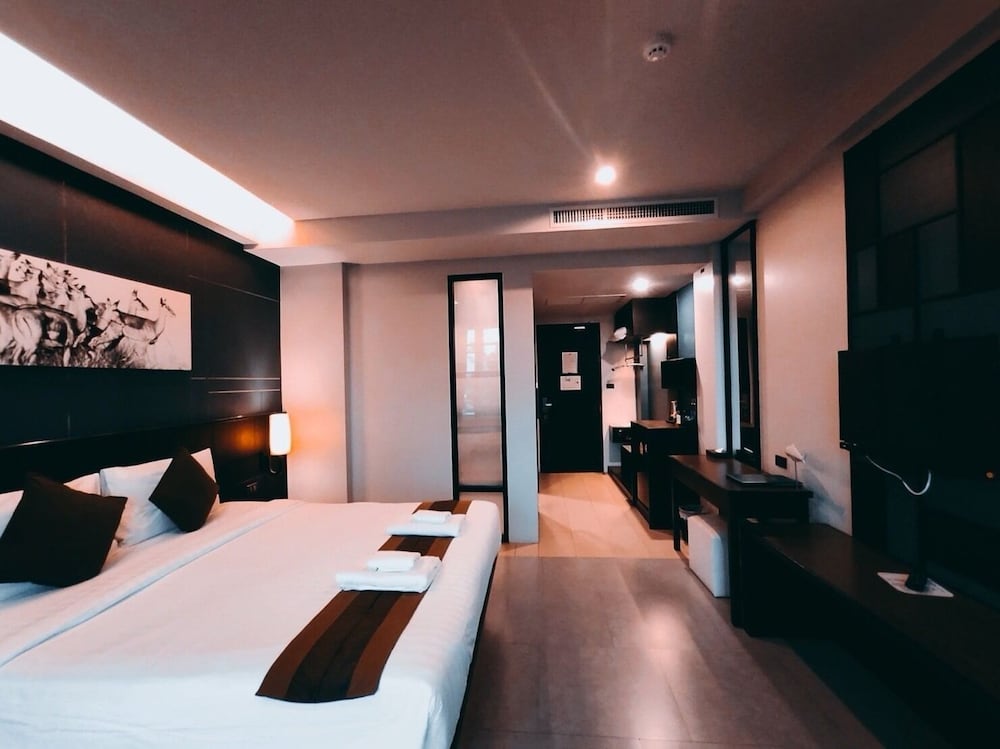 When we arrived we were pleased with modern look, clean installation and the nice pool. Unfortunately that’s where it stops. First, the, staff can barely speak OR understand basic English and the shuttle to the beach is a lie. They dropped us off but we waited in 40 degree heat and they never came to take us back. We had to pay 300 bath for a tuk tuk back to the hotel ( at least we go a refund from the hotel manager). We couldn’t sleep during the whole stay since the mattress was made out of concrete. At one point we wanted to sleep on the floor. Same with the chairs and the tiny tiny balcony. There’s no way to people can sit comfortably. As for the location goes, it is extremely bad !!!!! As for the room service it was inconsistent. One day the food was excellent and the next day just awful. So much that we haven’t finish our plate. What are the alternative aside from room sert, well there’s not much except for a 7 11 and street food. Nothing to do.... Boring as hell. We were so miserable at that hotel that we decided to cancel our stay and go to Aree Tara ( of course no refund of the night we canceled). We arrived at our other hotel Aree Tara and it’s night and day. It’s to bad because it’s a nice place but the mattress, chairs and service is unacceptable!!!!!!