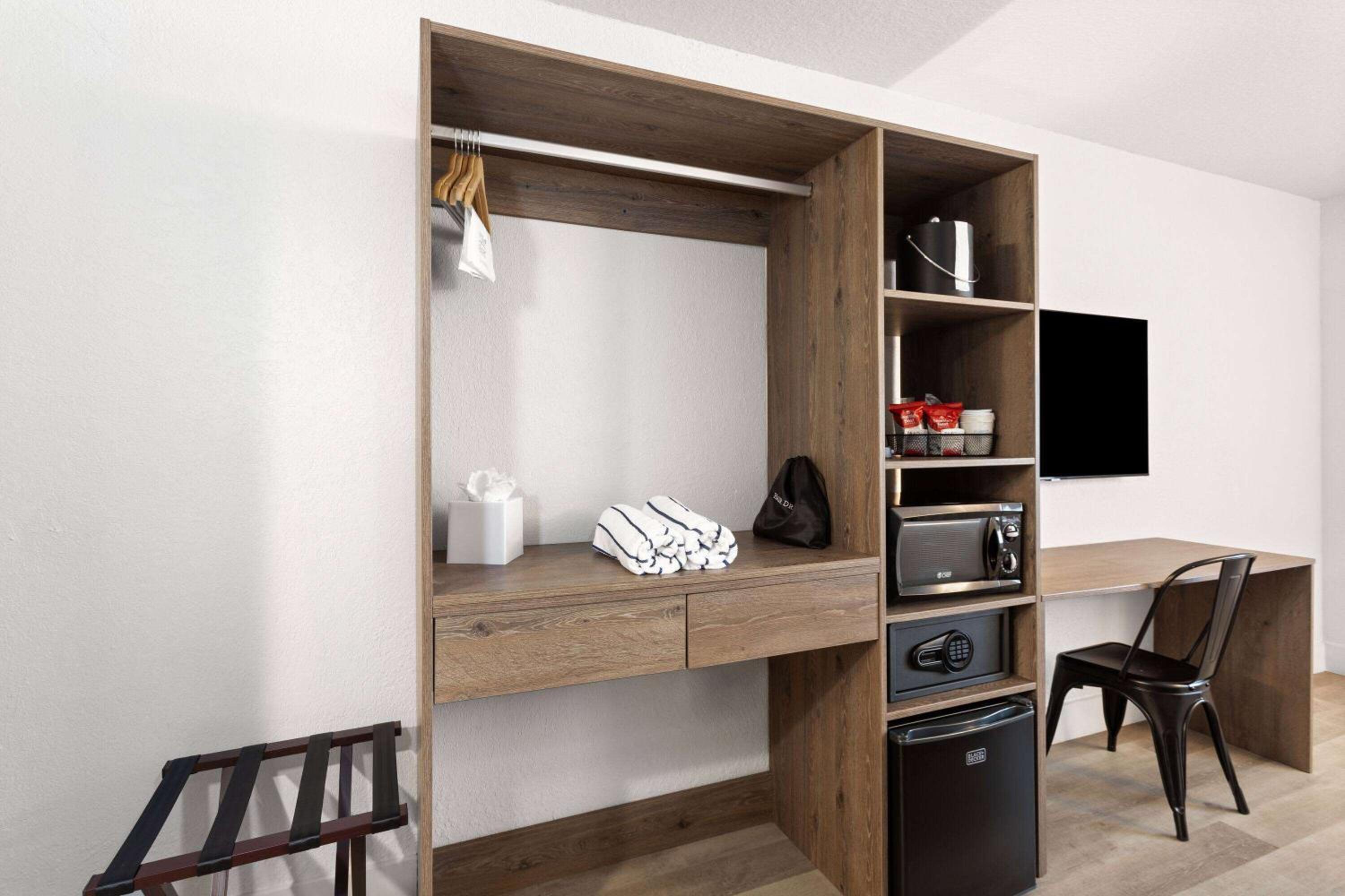 Enjoy a delightful start to your day with our complimentary continental breakfast. Each room is equipped with a microwave, refrigerator, and free wireless internet to make you feel at home.