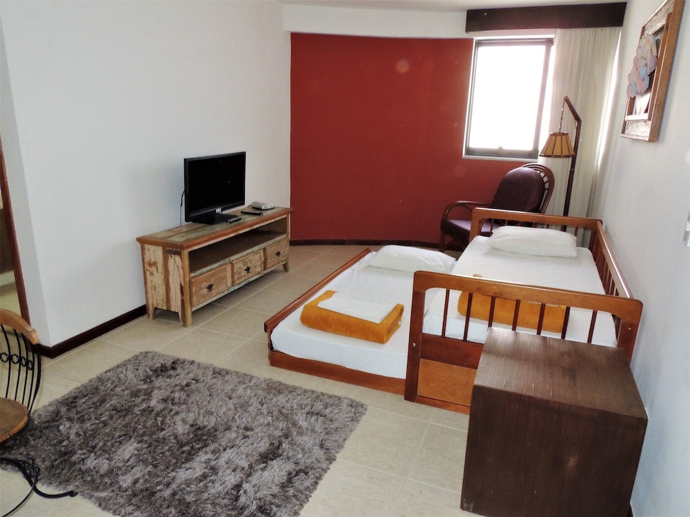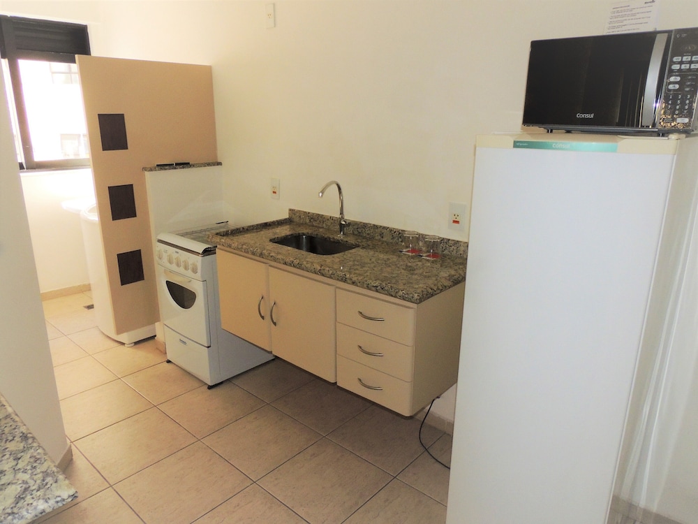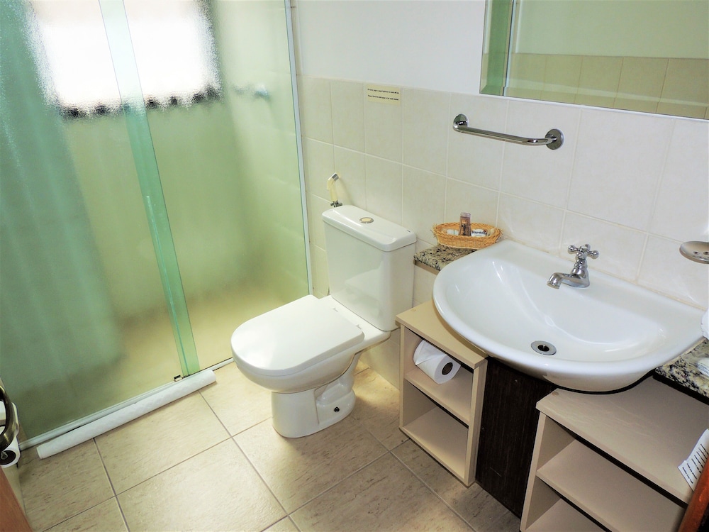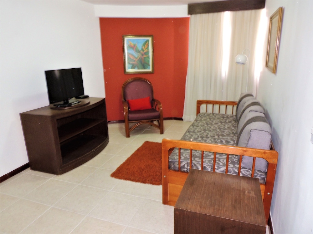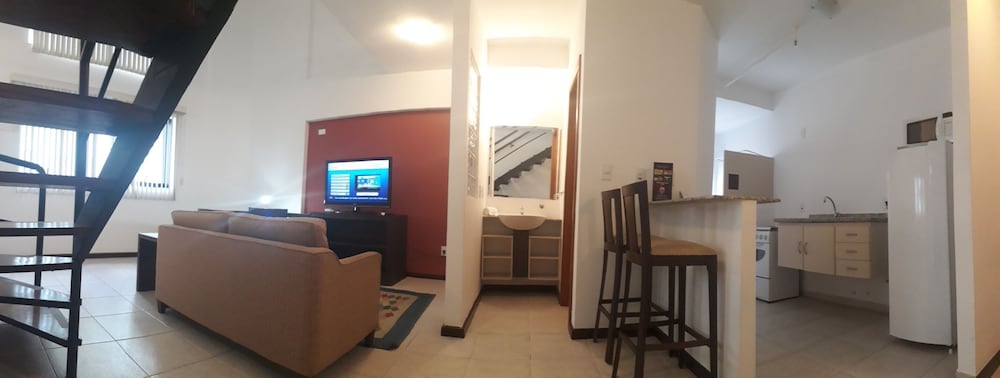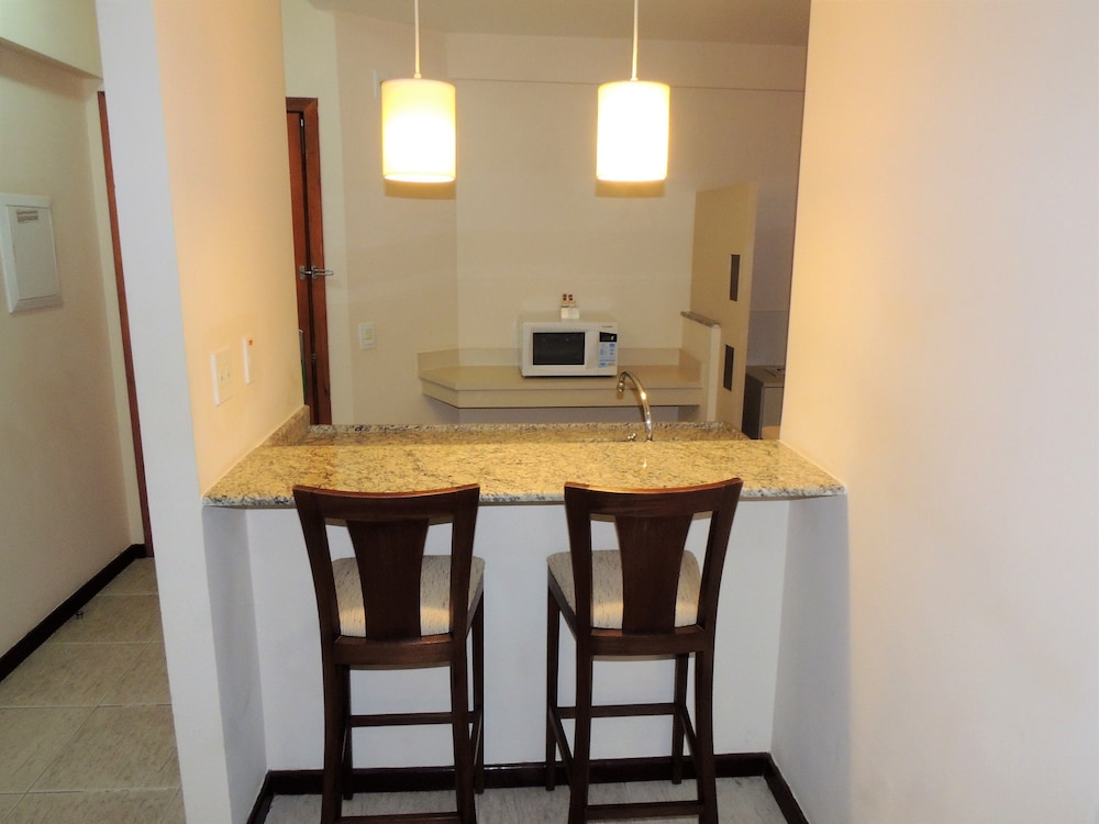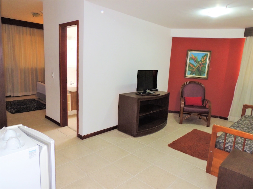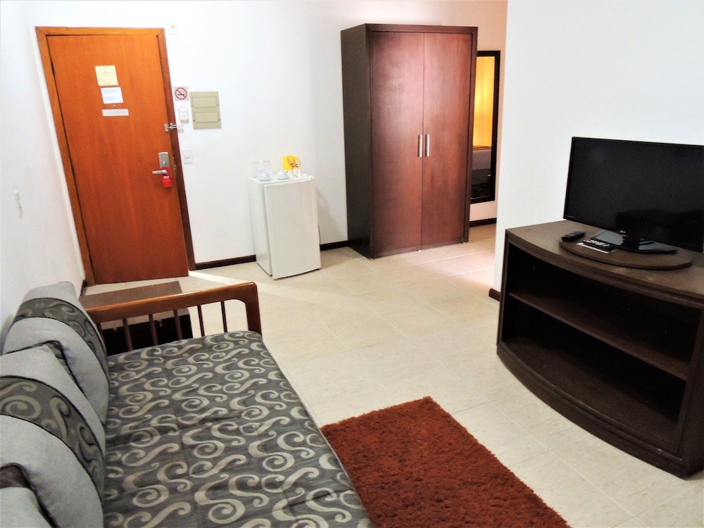 O apartamento é espaçoso e confortável, contava com chaleira elétrica, duas TVs, mesa para refeições e amenities. Mas tinha dentro do box do banheiro uma coluna estrutural que atrapalhava a movimentação.