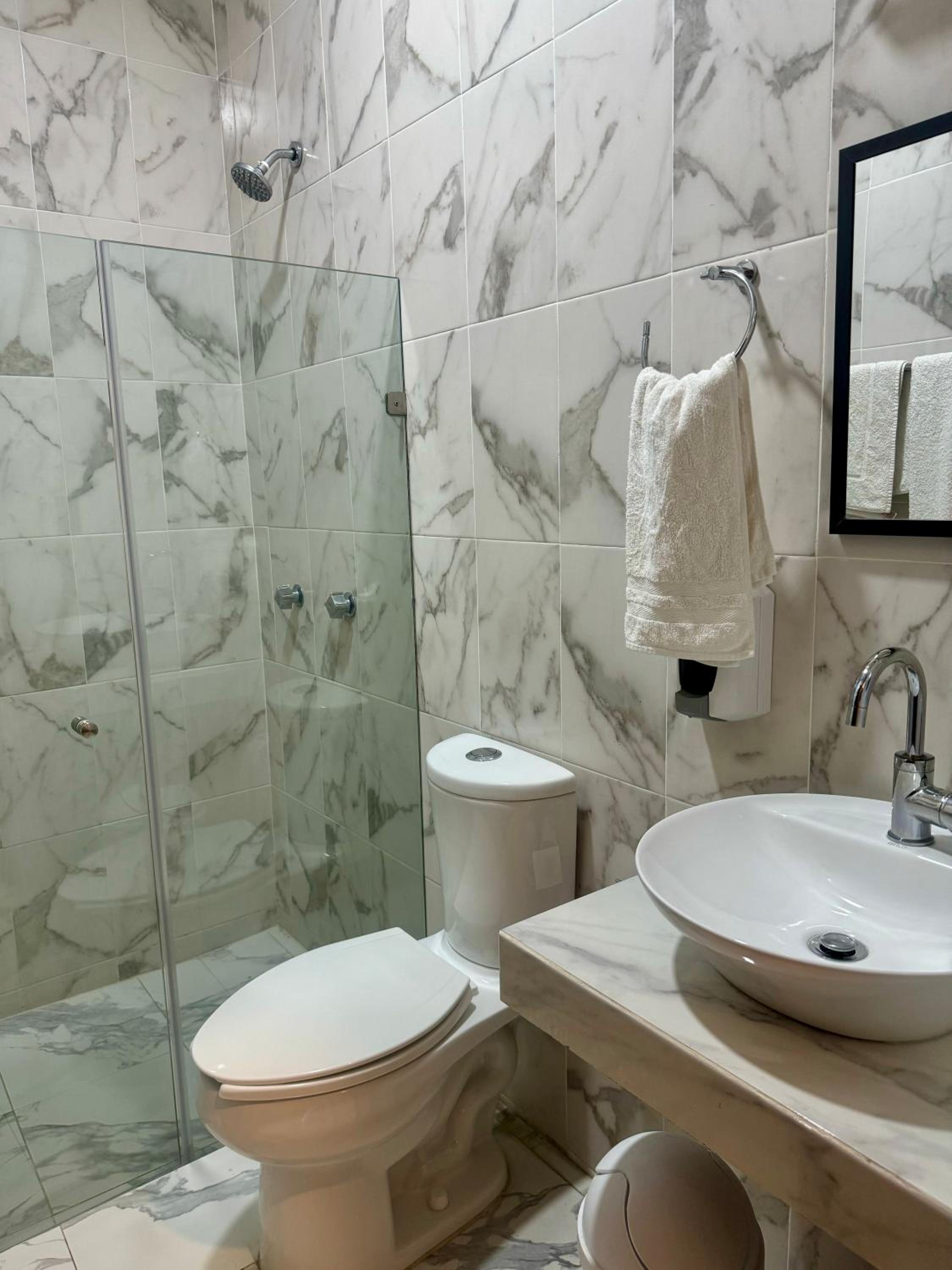 el estacionamiento seria bueno que se delimitaran cajones o los espacios por que hay gente que no se estaciona adecuadamente, por otro en esta ocasión la habitacion no tenia el cristal de la puerta lo que hacia que el agua se salga del área de regadera, seria excelente no dejar pasar esos detalles