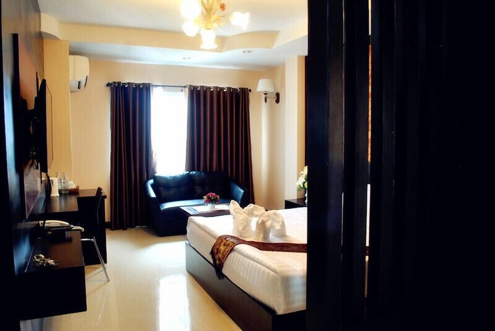 Great hotel in Phitsanulok. The Manager Jaeb is incredible. Greeted us upon arrival & sent us off when we left. The rooms are excellent. Spacious & comfortable. The pool is great. Went every day it was nice out. The breakfast was also great & was included in my room. We had dinner twice from Room Service & it was really great. The fried rice/Khao Pot is the best I've had in Thailand & I highly recommend eating this alot. If you come to Phitsananolok, I would definitely come to this hotel. Jaeb runs the show & will make sure your stay is good. This hotel is one of the best I've stayed in Thailand with a great breakfast & breakfast room, great pool & beautiful rooms. My Wife & I had a very enjoyable stay here & you will, too.