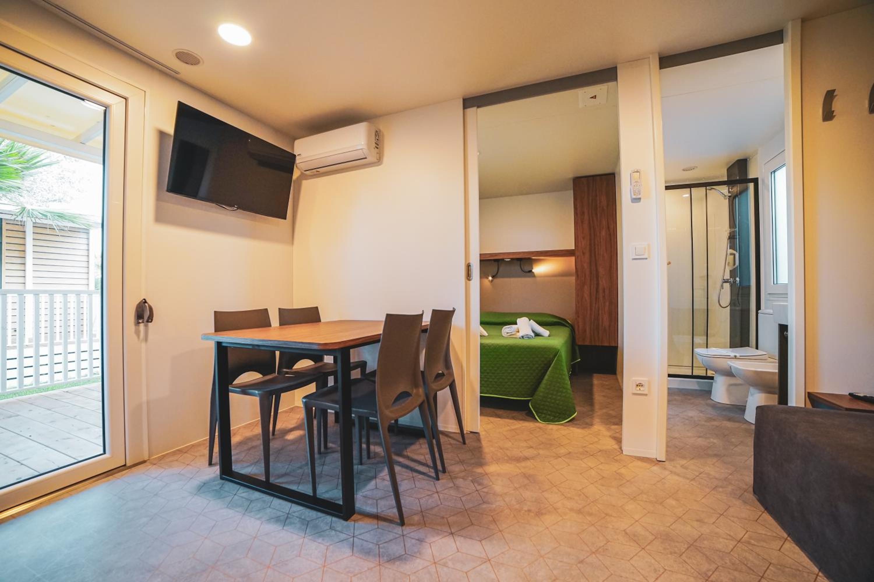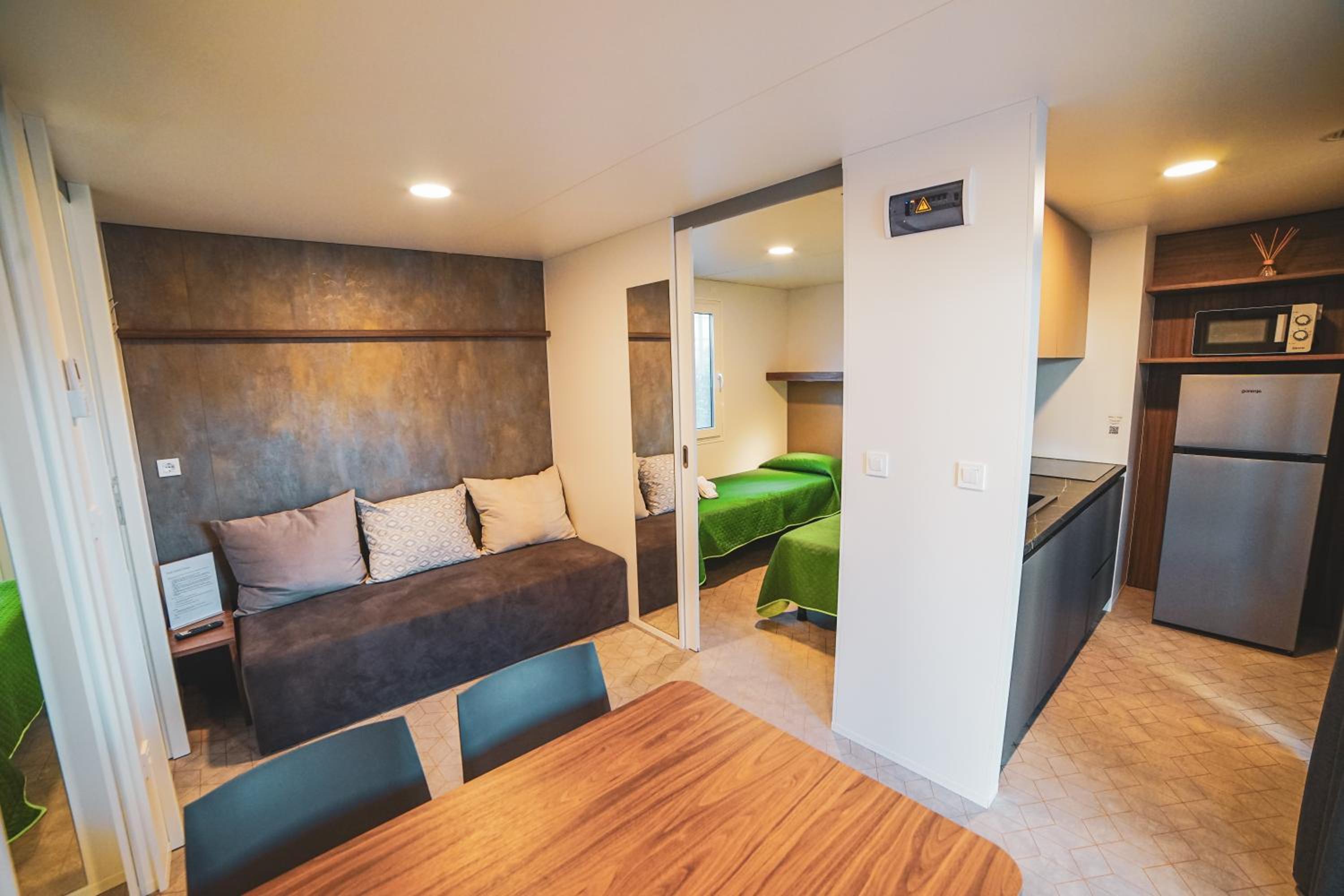 Das Mobile Home hat uns alle sehr begeistert! Sah hübsch aus, war alles drin was man braucht. Schöne Lage. Schön das man auf der Terrasse essen konnte. Hübsch angelegt. Lebensmittelgeschäft in der Nähe, sowie die Pizzeria. Strand in 2 Minuten Entfernung. Werden wir wieder buchen.